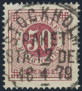 Sweden. Facit 36a used, 50 öre carmine. EXCELLENT cancellation STOCKHOLM PAKET STADEN 12.4.1879.