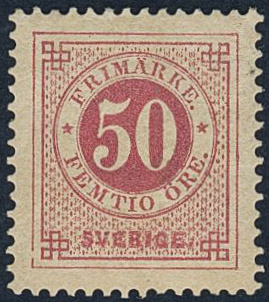 Sweden. Facit 36g ★, 50 öre carmine-red on soft paper. Superb. The gum somewhat aged. SEK 5000++