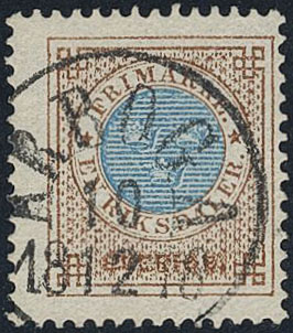 Sweden. Facit 37 used, 1 Riksdaler brown/blue. Superb canc. ARBOGA 10.12.1878. SEK 4000