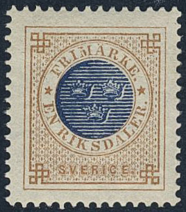Sweden. Facit 37N ★, 1 Riksdaler brown/dark blue reprint. Superb. SEK 3300