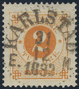 Sweden. Facit 40b used, 2 öre orange. EXCELLENT cancellation KARLSTAD E. M. 31.12.1892.
