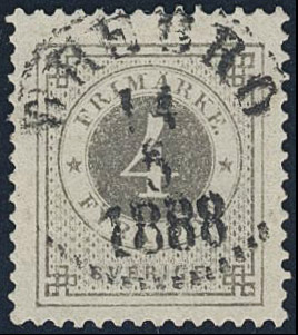 Sweden. Facit 42c used, 4 öre light grey. EXCELLENT cancellation ÖREBRO 14.5.1888.