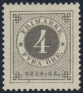 Sweden. Facit 42d ★★, 4 öre grey-black. EXCELLENT.