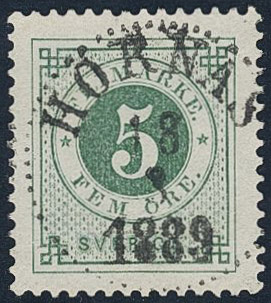 Sweden. Facit 43c used, 5 öre deep green. EXCELLENT cancellation HÖRNÄS 18.3.1889.
