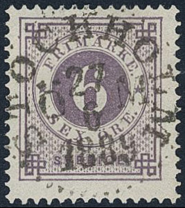 Sweden. Facit 44a used, 6 öre bluish lilac. EXCELLENT cancellation STOCKHOLM Ö M 27.6.1889.