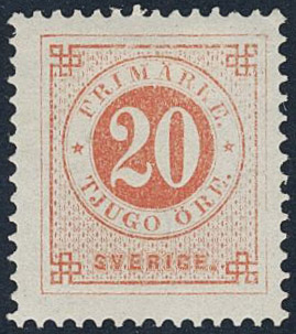 Sweden. Facit 46b ★, 20 öre light orange-red. Very fine. Signed by O.P. SEK 1500