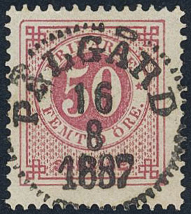 Sweden. Facit 48a used, 50 öre carmine-rose. EXCELLENT cancellation PÅLGÅRD 16.8.1887.