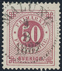 Sweden. Facit 48b used, 50 öre carmine, even print. Superb cancellation MALUNG 9.8.1887.