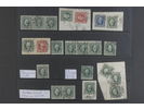 Sweden. Facit 52b used, 1892 Oscar II 5 öre deep green, pale head. Ca. 40 stamp 5–20 öre, incl. 5 öre deep green, pale head with two crowns, inverted crown.