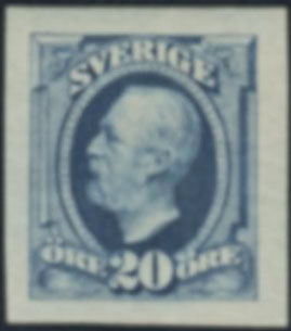 Sweden. Facit 56d v1 ★, 1896 Oscar II 20 öre blue. Imperforate. Excellent quality.