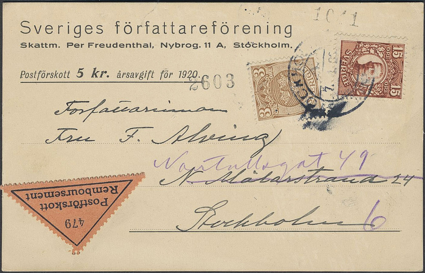Sweden. Facit 84, 73 on cover, 3+15 öre on LOCAL cash on delivery printed matter, cancelled STOCKHOLM 7.1.20. Scarce postage.