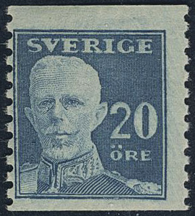 Sweden. Facit 151Abz ★★, 1920 Gustaf V full face 20 öre blue vertical perf 9¾ with wmk. Off-centered. SEK 3800