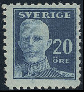 Sweden. Facit 151CdBz ★★, 1920 Gustaf V full face 20 öre dark dull blue perf 9¾ on four sides with wmk KPV. SEK 2000