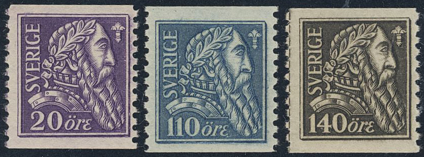 Sweden. Facit 153–55 ★★, 1921 Gustaf Vasa SET (3). SEK 2650