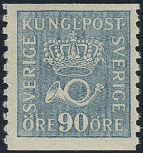 Sweden. Facit 167bA1 ★★, 90 öre greyish light blue vertical perf 9¾ on thick pale rose toned paper (A1). SEK 1900
