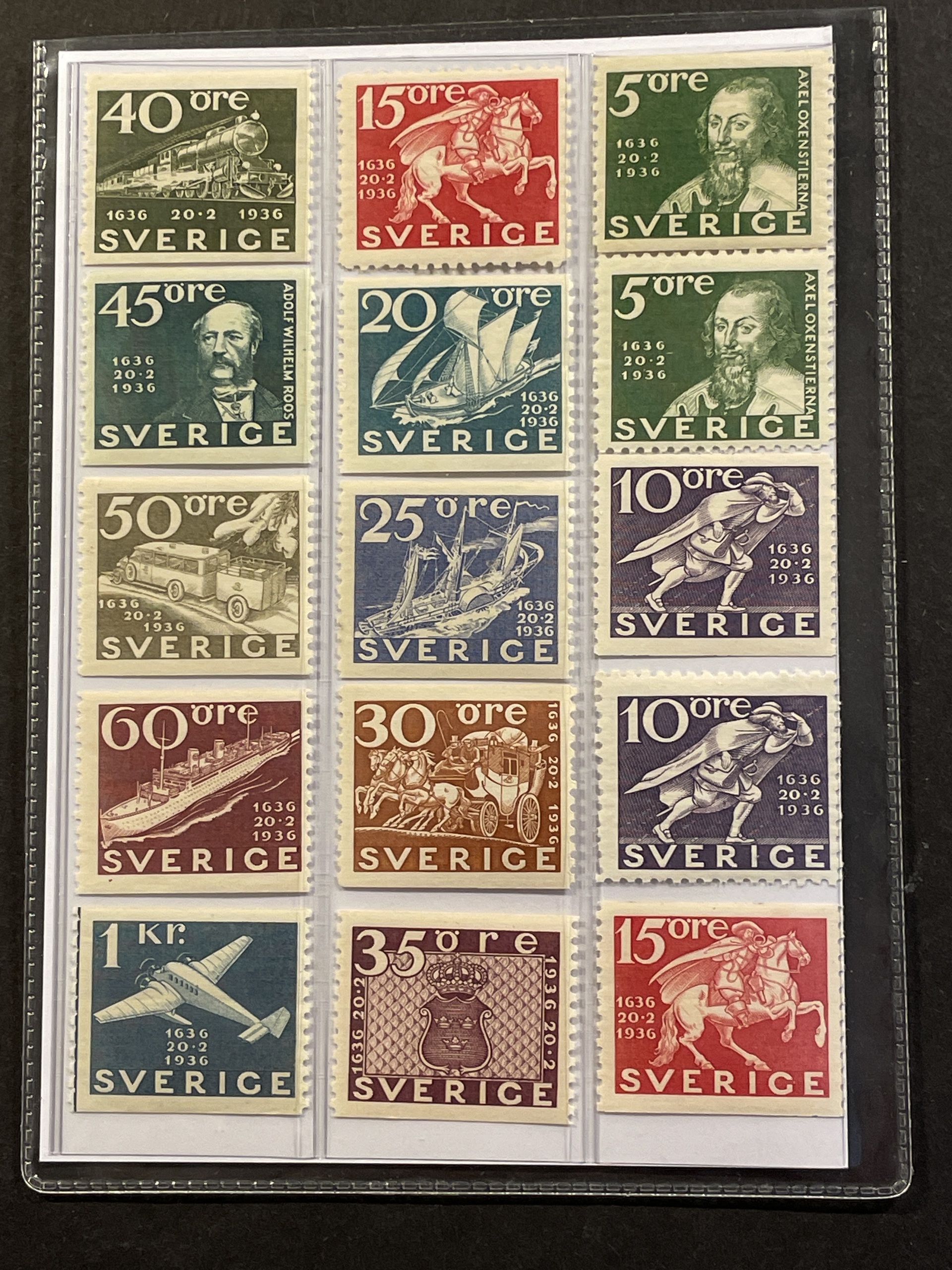 Sweden. Facit 246–57 ★★, 1936 Tercentenary of the Post Office SET (15). SEK 2950