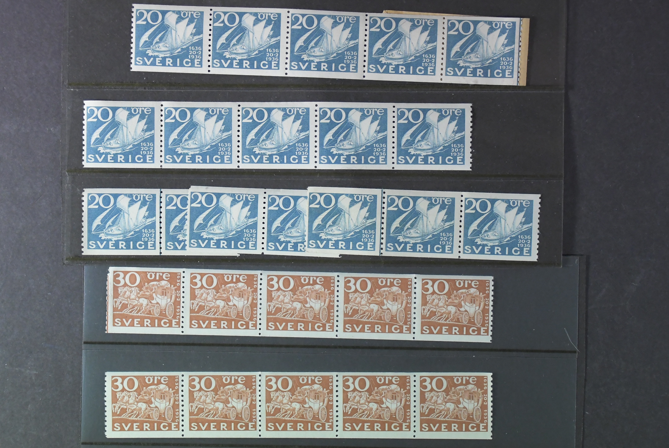 Sweden. Facit 249, 251 ★★, 1936 Tercentenary of the Post Office 20 + 30 öre. 20 öre ca. 14 ex and 30 öre ca. 15 ex.
