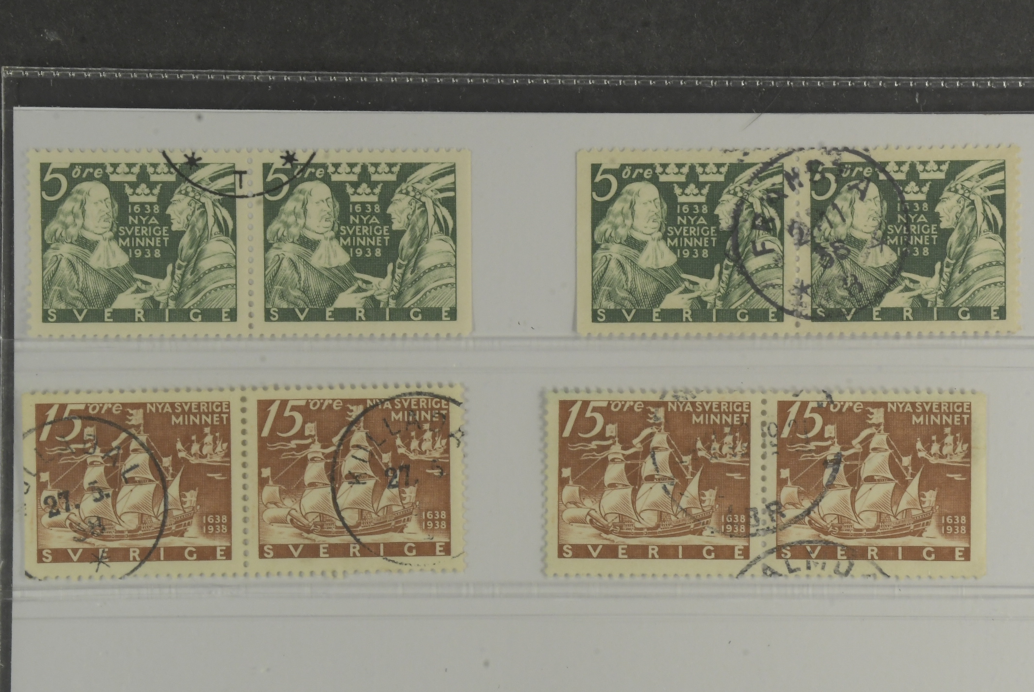 Sweden. Facit 261–62BC/CB used, 1938 New Sweden 5+15 öre pairs 3+4 and 4+3 (4). SEK 2100