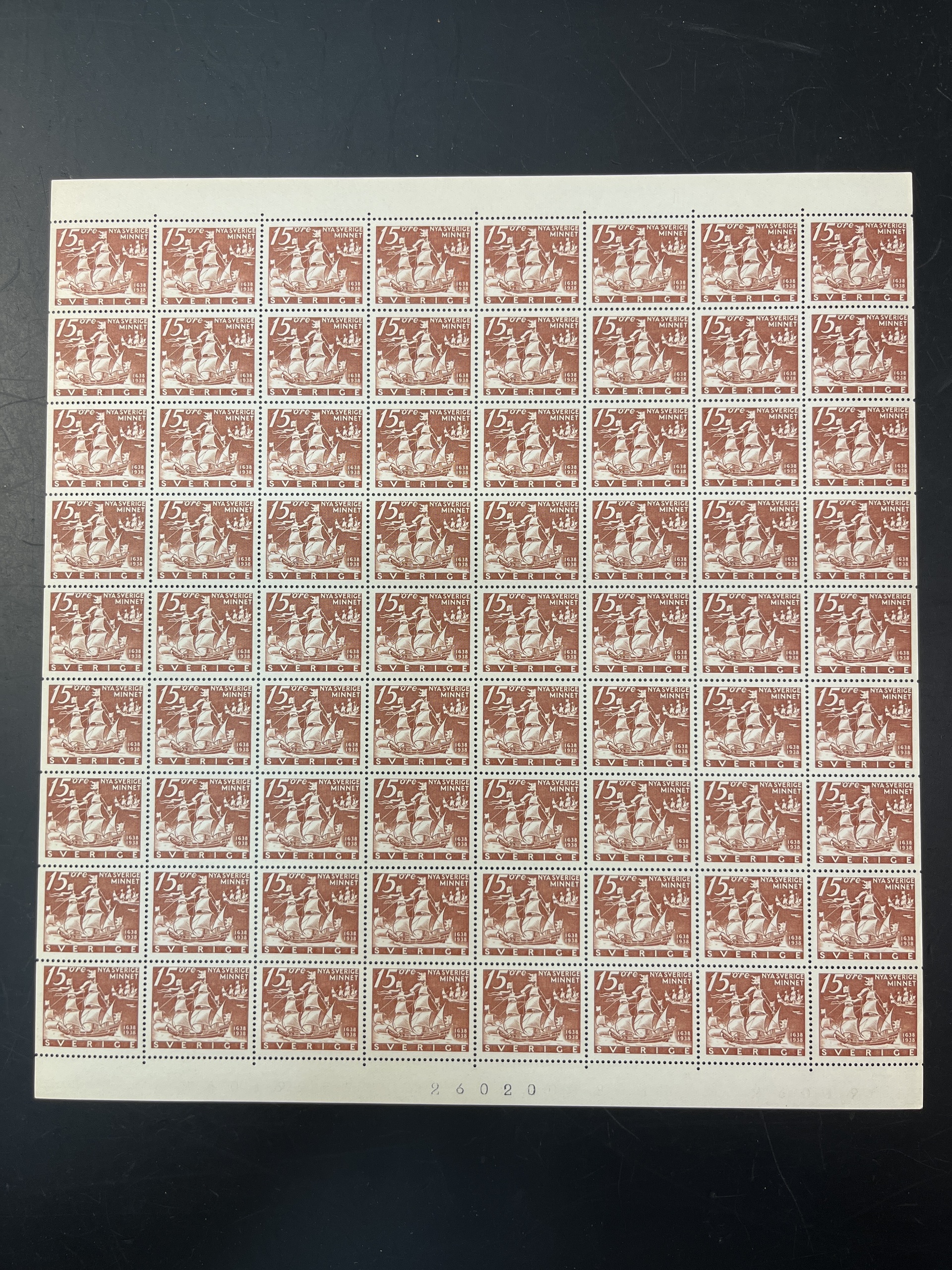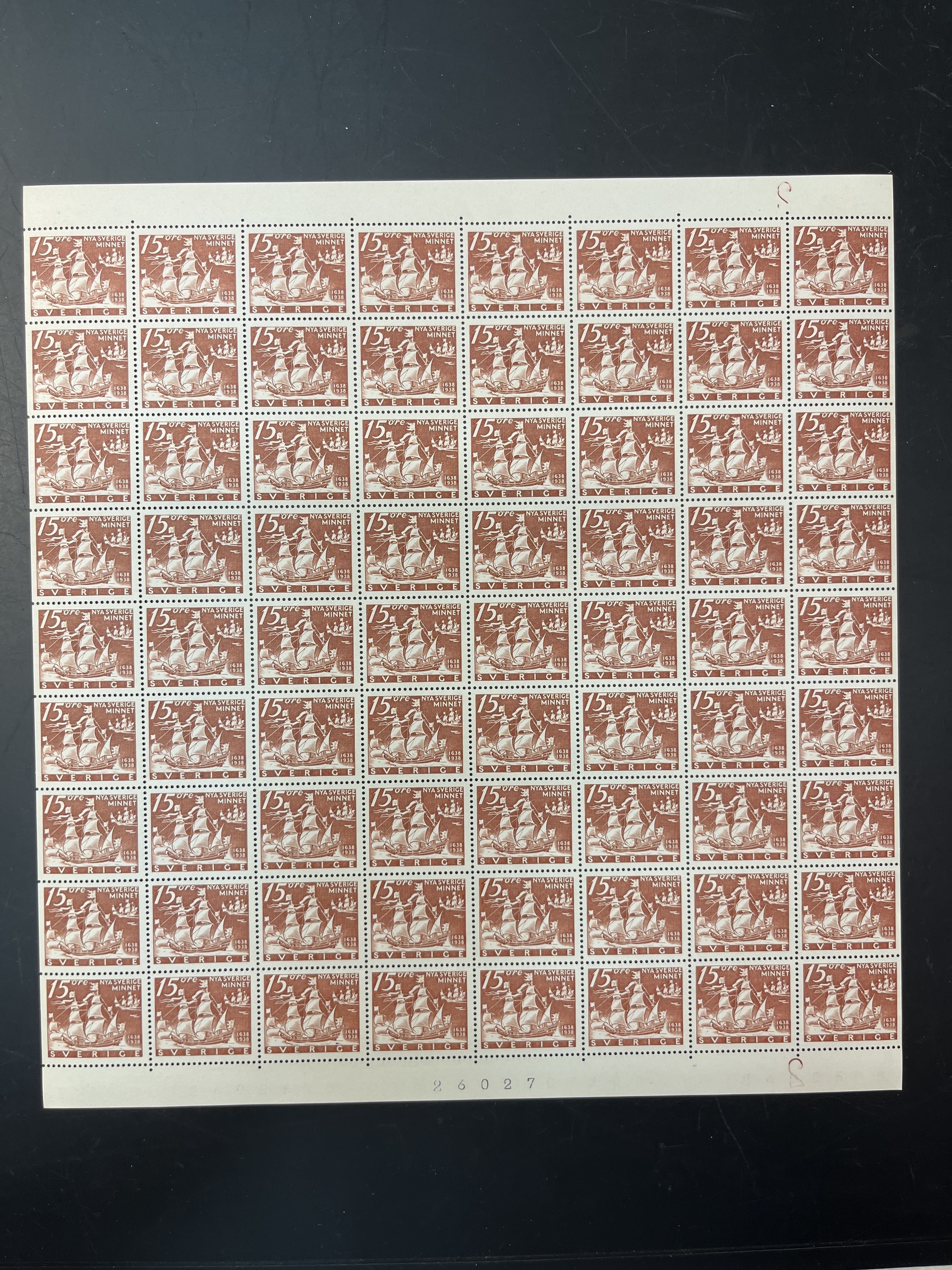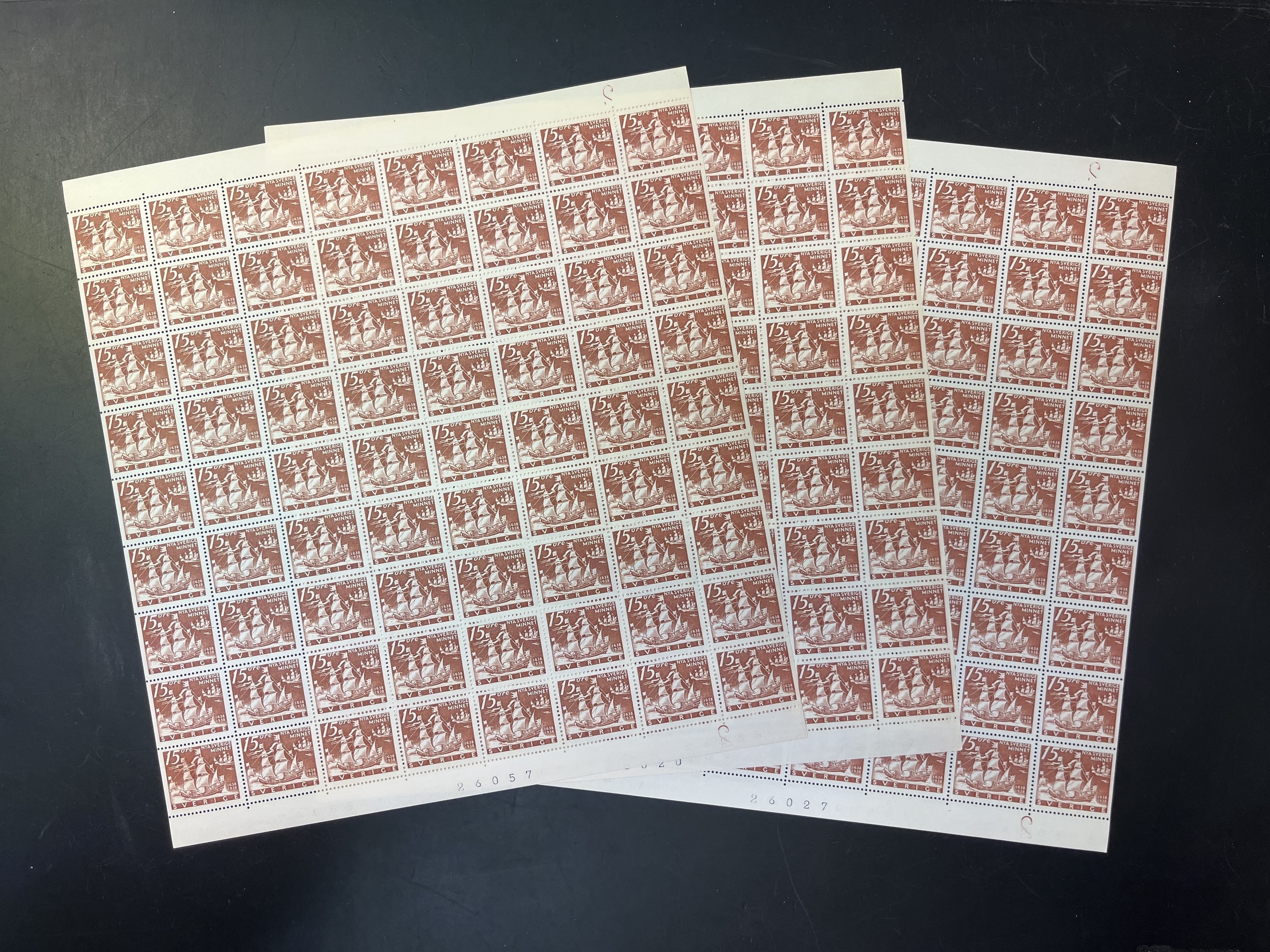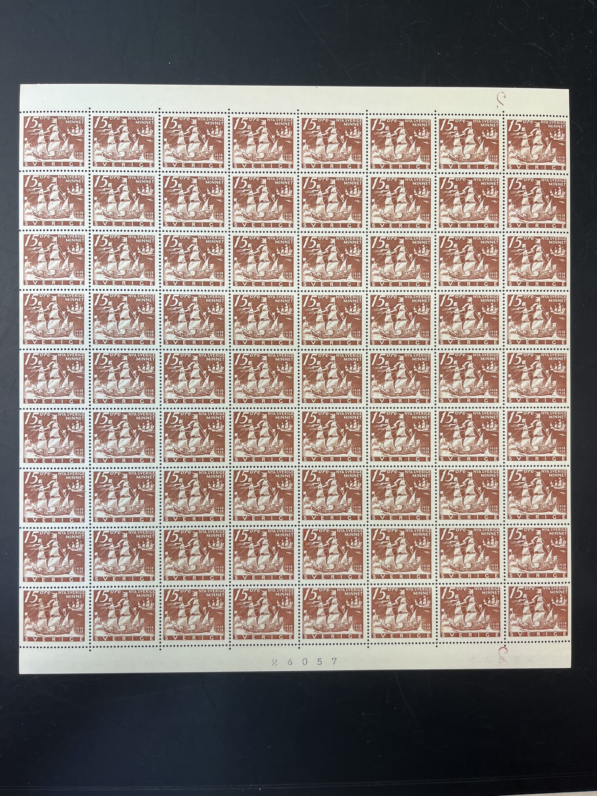 Sweden. Facit 262BC/CB ★★, 1938 New Sweden 15 öre pairs 3+4 and 4+3 in three sheets of 72. SEK 25000