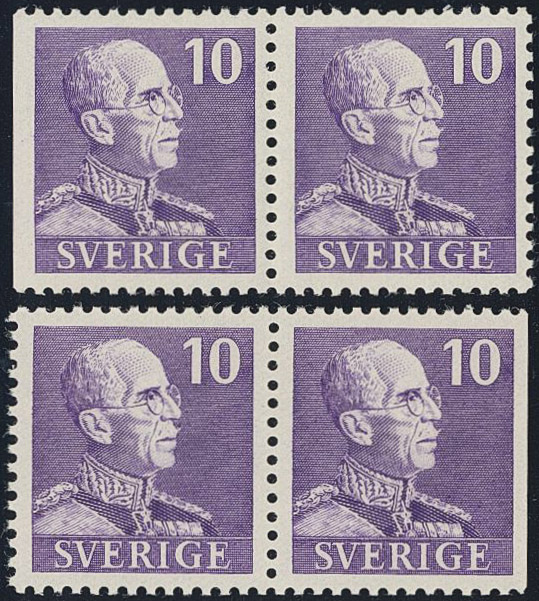Sweden. Facit 269BC/CB ★★, 1939 Gustaf V small numerals 10 öre pair 3+4 and 4+3. Wide margins. SEK 2200