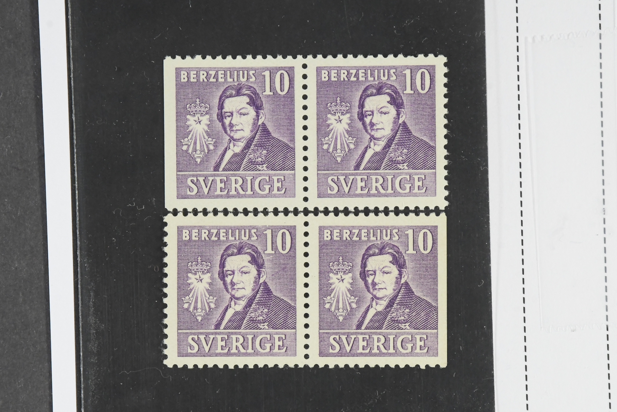 Sweden. Facit 320BC/CB ★★, 1939 Royal Academy of Sciences 10 öre violet, pair 3+4 and 4+3. Wide margins. SEK 3400