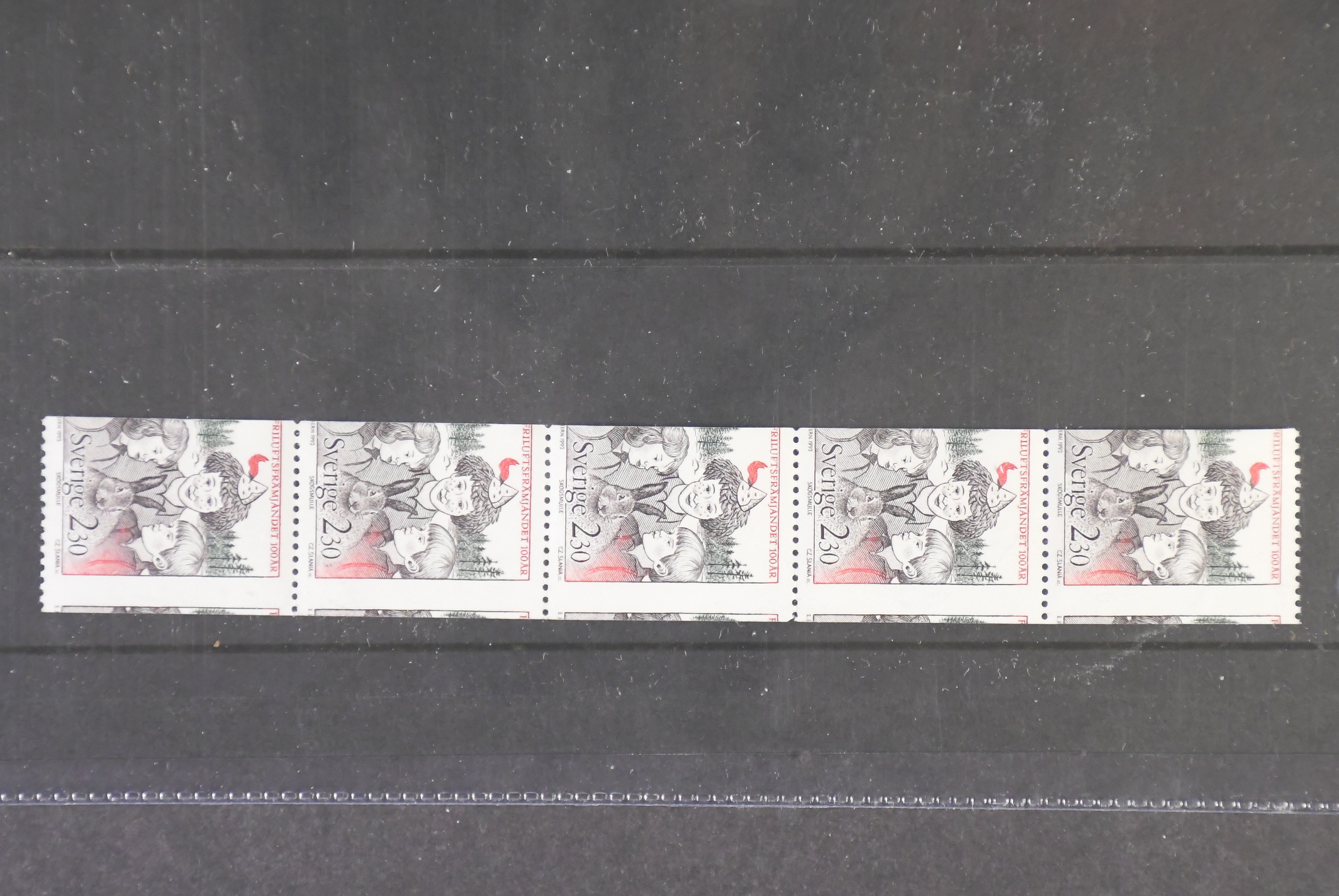 Sweden. Facit 1721 ★★, 1992 Outdoor Lift Association 2.30 Kr in strip of five with heavily wrong perforation.