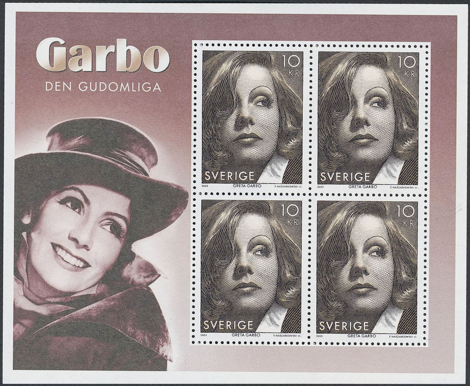 Sweden. Facit 2508C ★★, 2005 Greta Garbo 10 Kr perf at four sides in souvenir sheet. SEK 1000