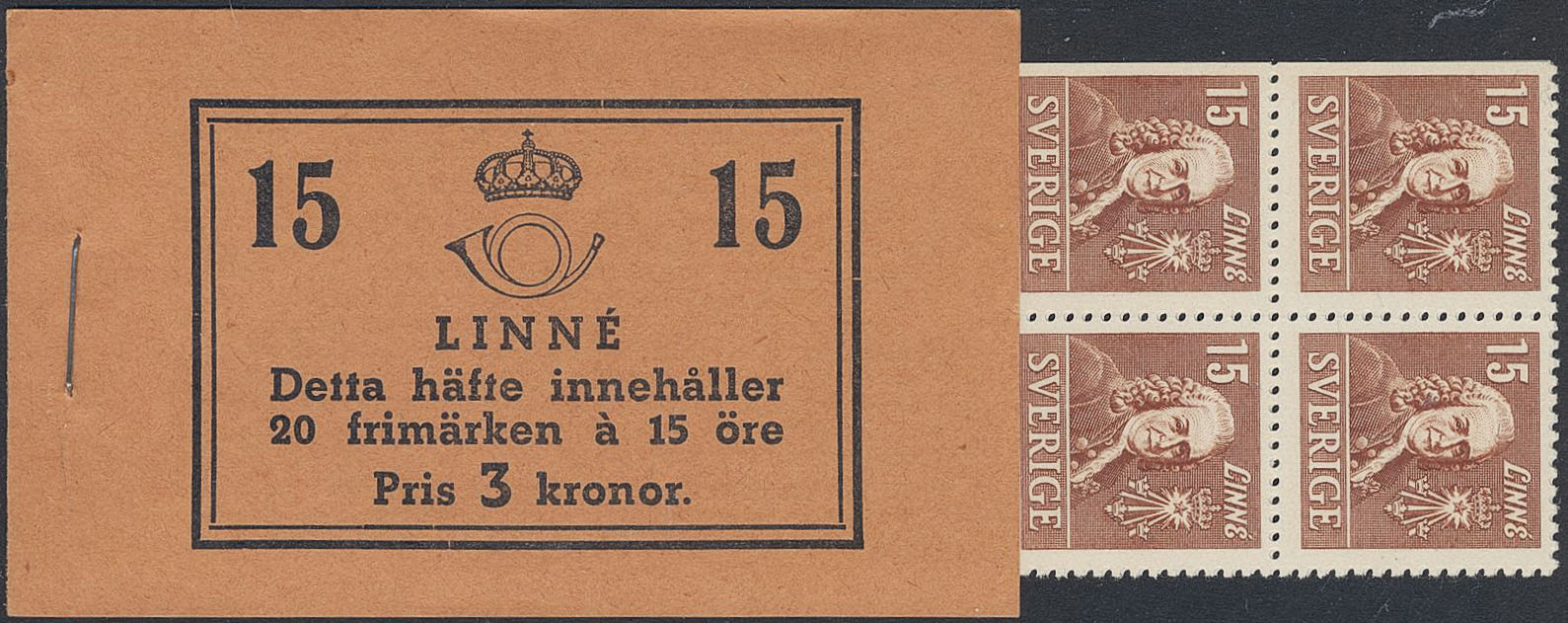 Sweden. Booklet Facit H41ABC O, 1939 Royal Academy of Sciences 20 × 15 öre brown, perf on 3+4 sides. “Linné” on the cover. Nice marg. SEK 17000