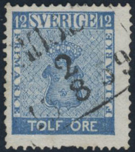 Sweden. Facit 9c1, O county. OROUST 2.8.1859, rectangular postmark. One missing perf. Allegedly, position 39. Postal: 2000:-