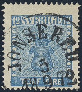Sweden. Facit 9m, P county. JONSERED 5.9.1872, circle cancellation. The stamp from position 58 in plate 7. Postal: 400:-