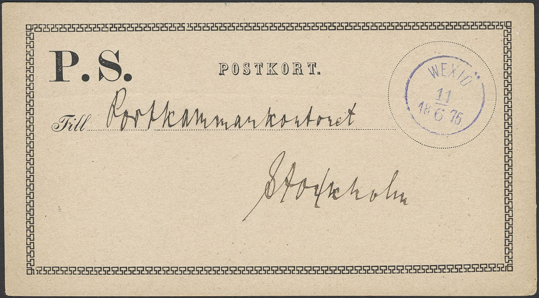 Sweden. G county. WEXIÖ 11.6.1875. Ble postmark. Scarce, R5 according to the listing by SSPD.