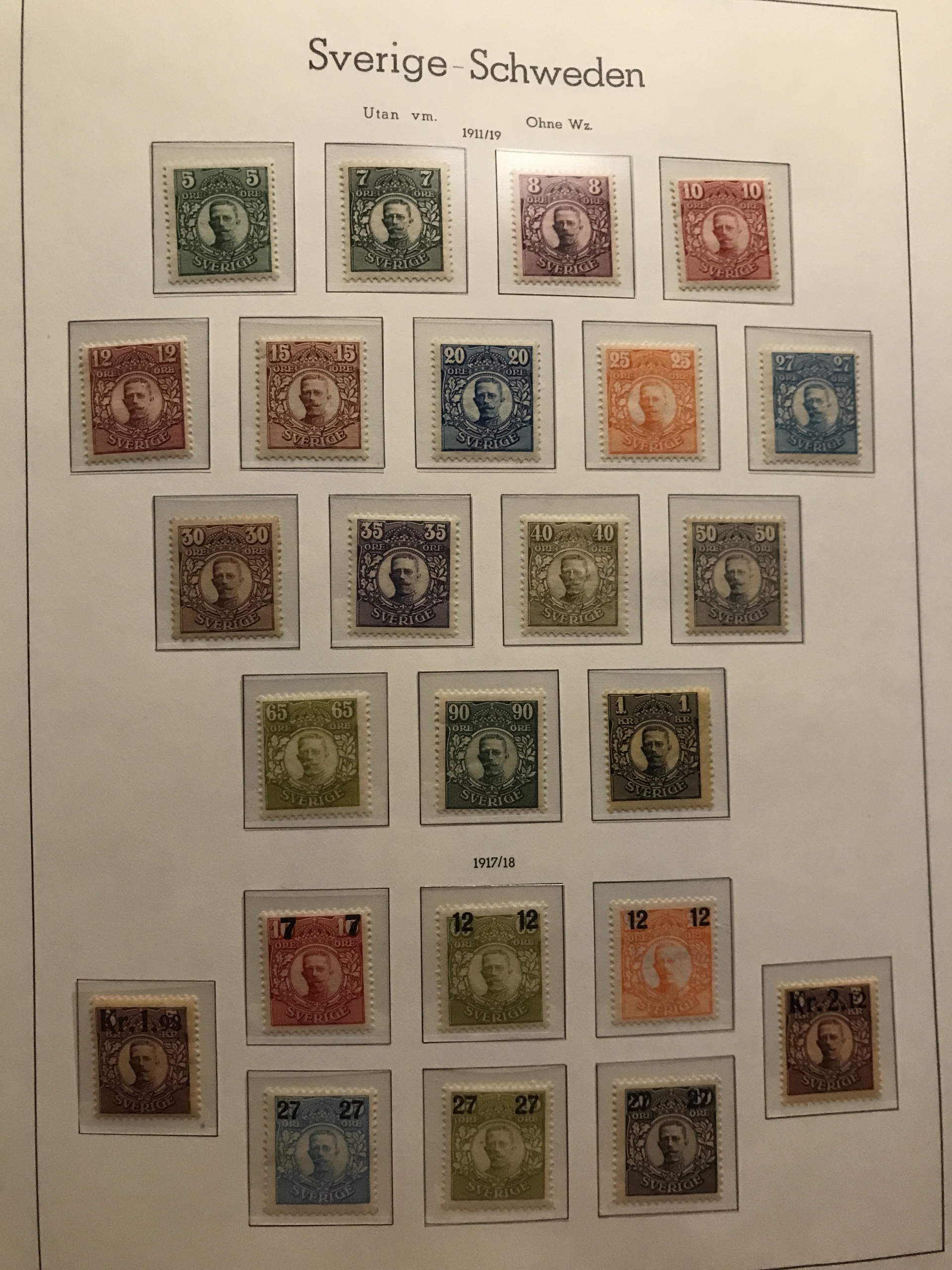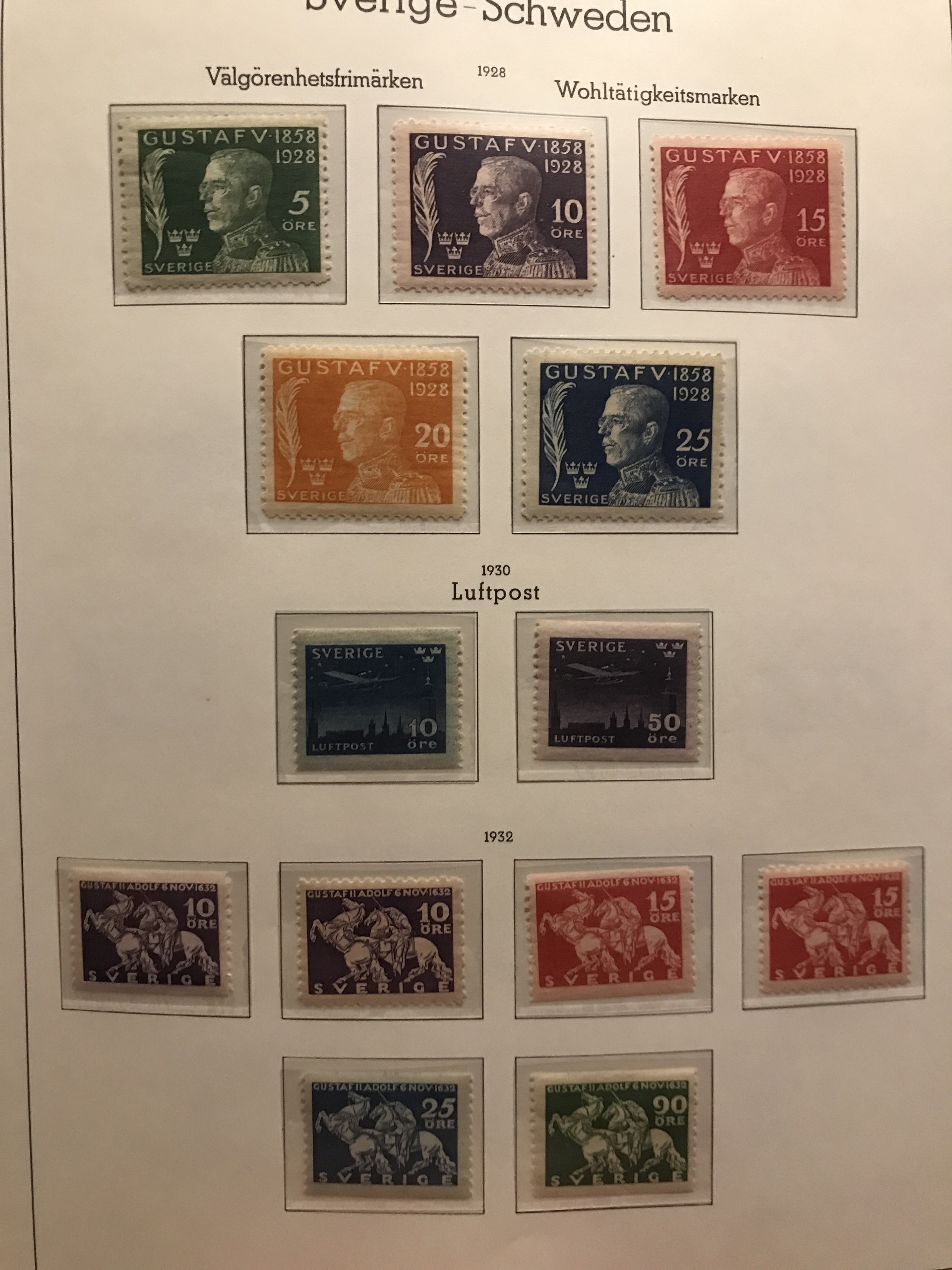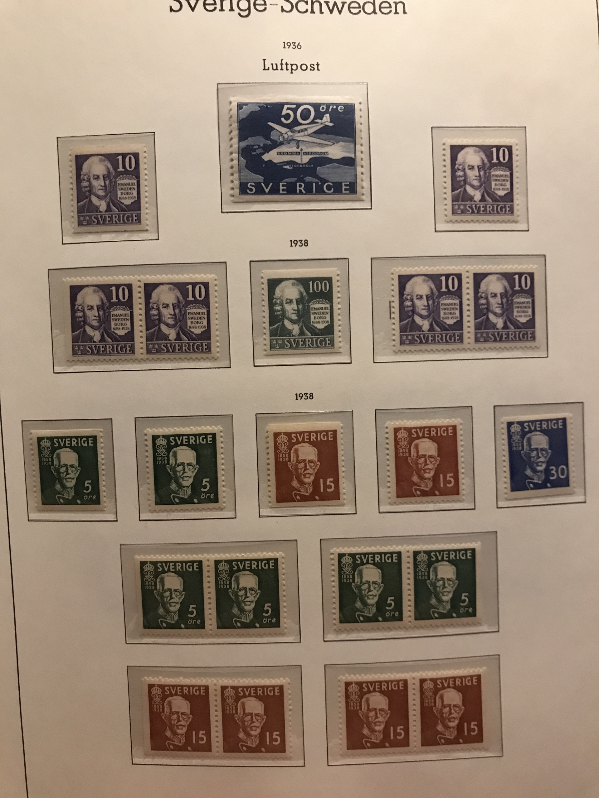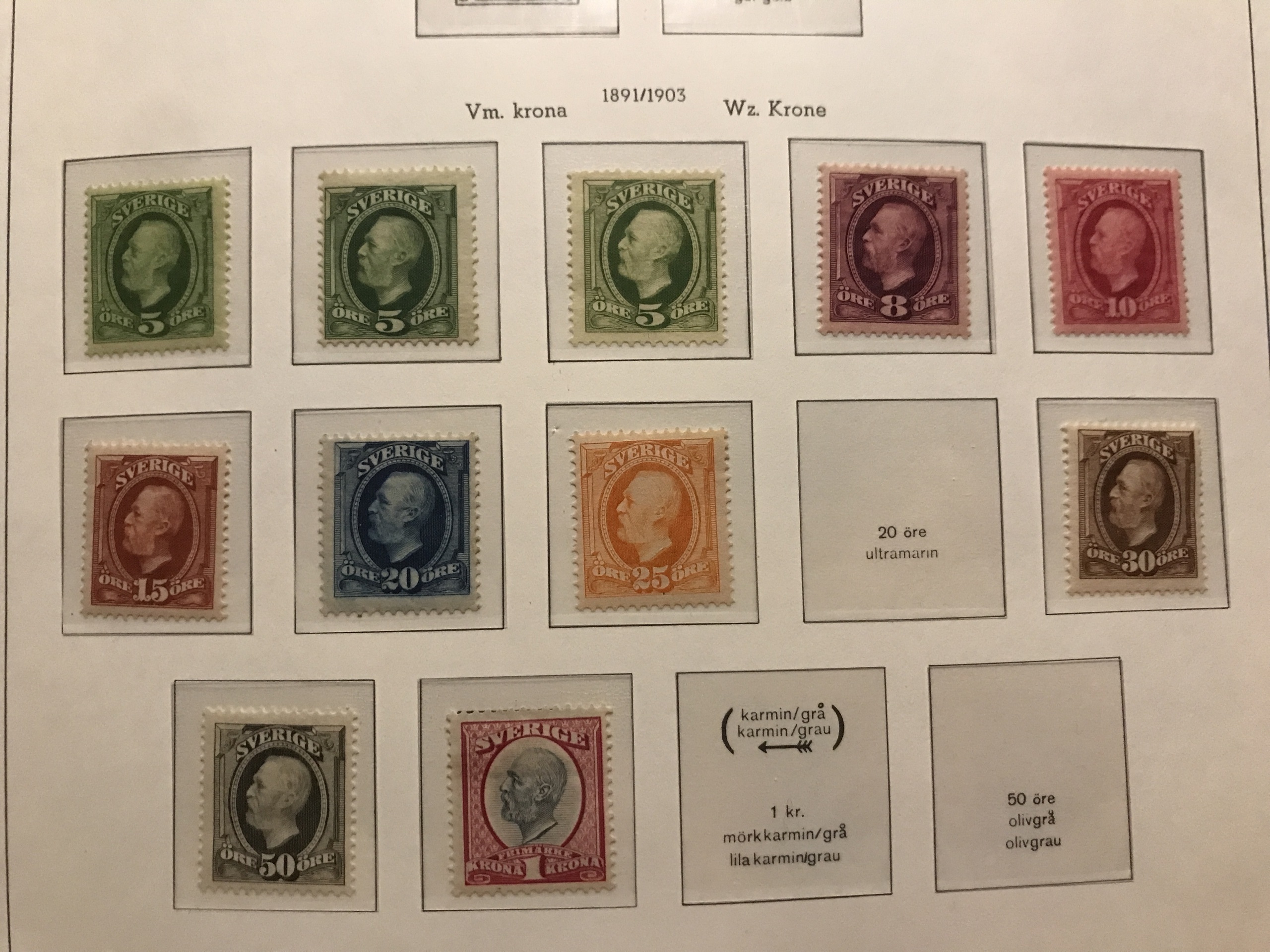 Sweden. ★★/★. Collection Oscar II–1980 in two Leuchtturm albums with slip cases. Containing e.g. cpl Oscar and good GV Medallion, some better Coil stamps, F223 **. Everything ** from 1928 incl. F234–58, 20 BC/CB-pairs and F337C, etc. Please see a selection of scans at www.philea.se.