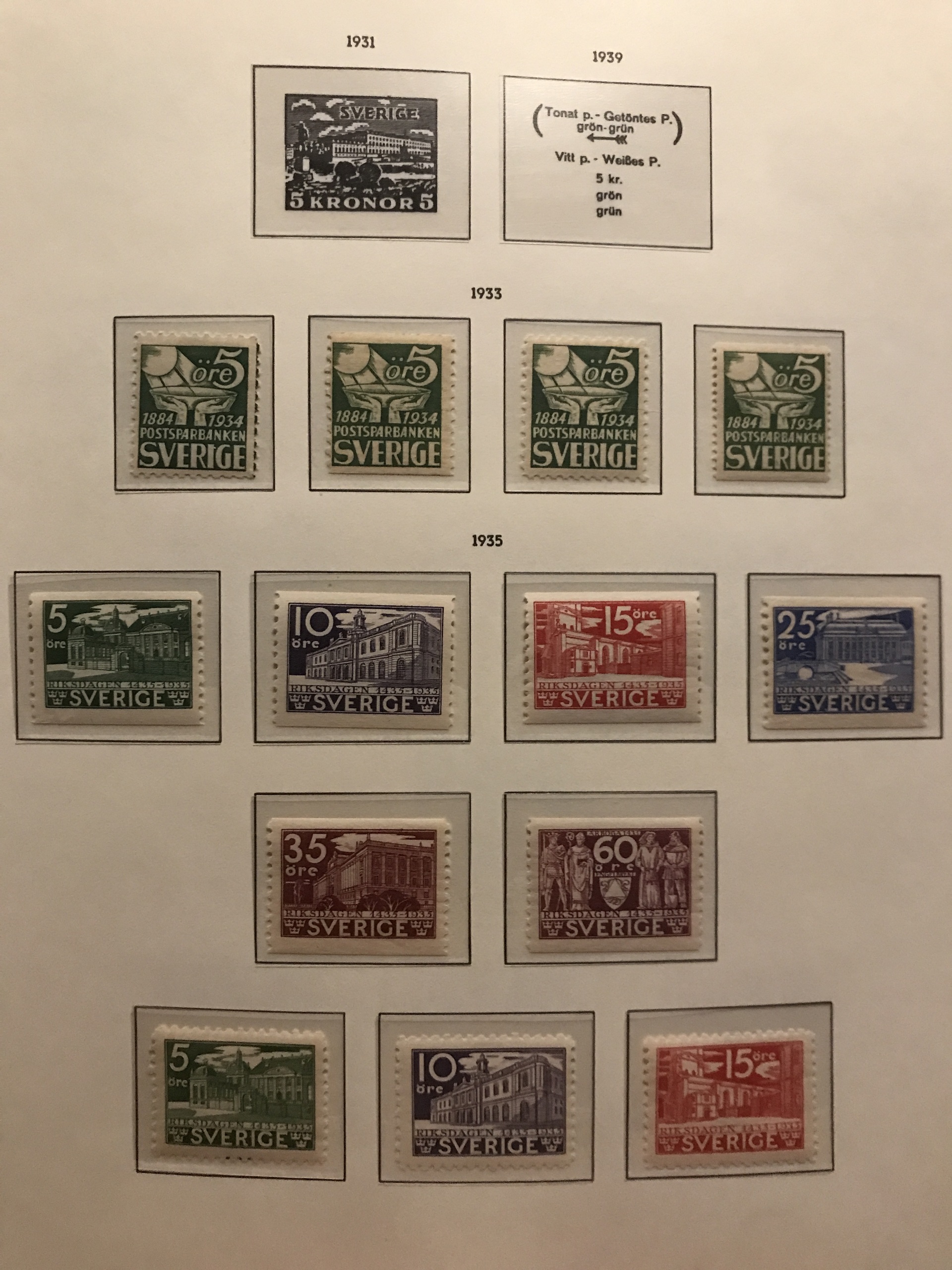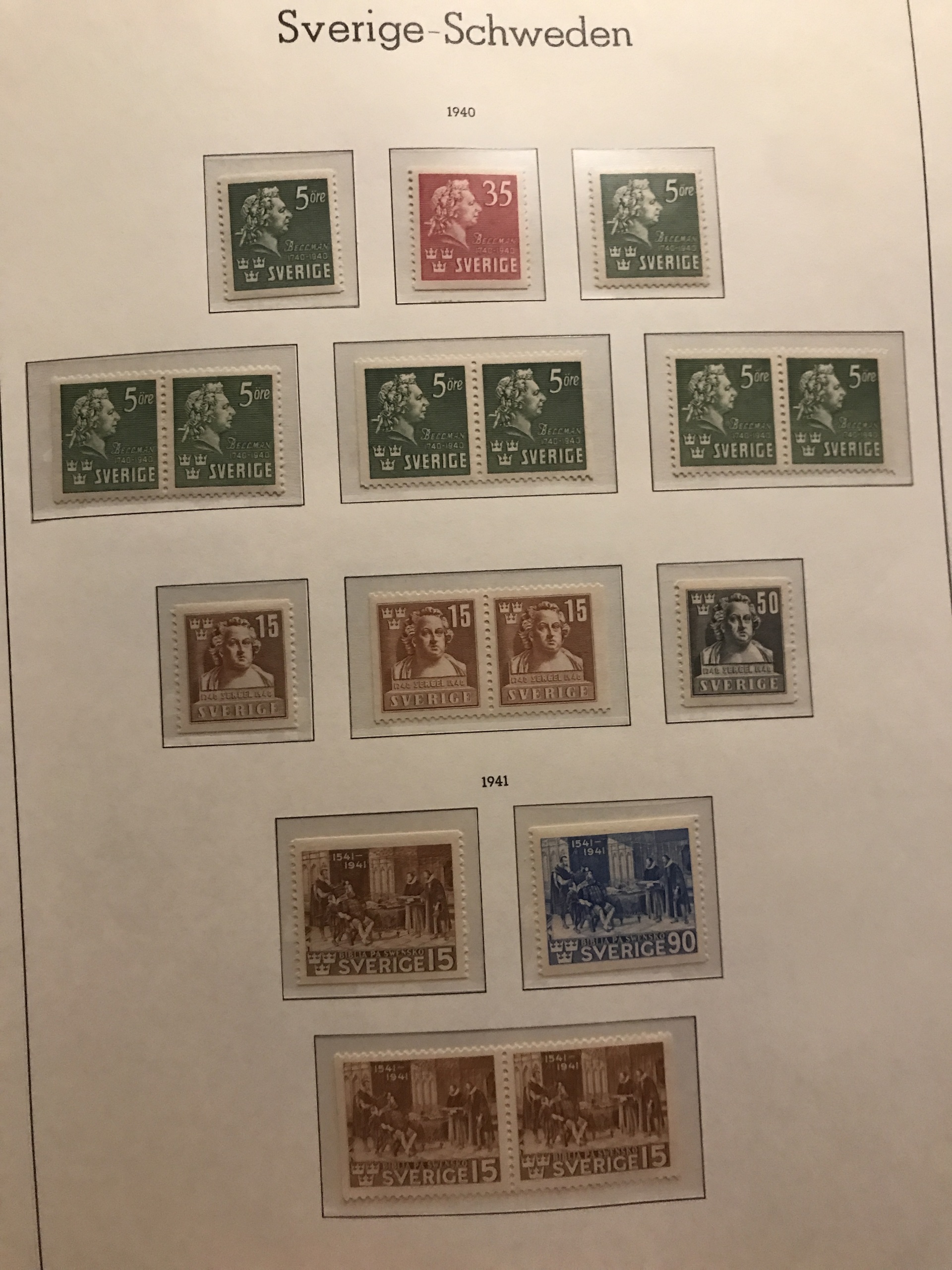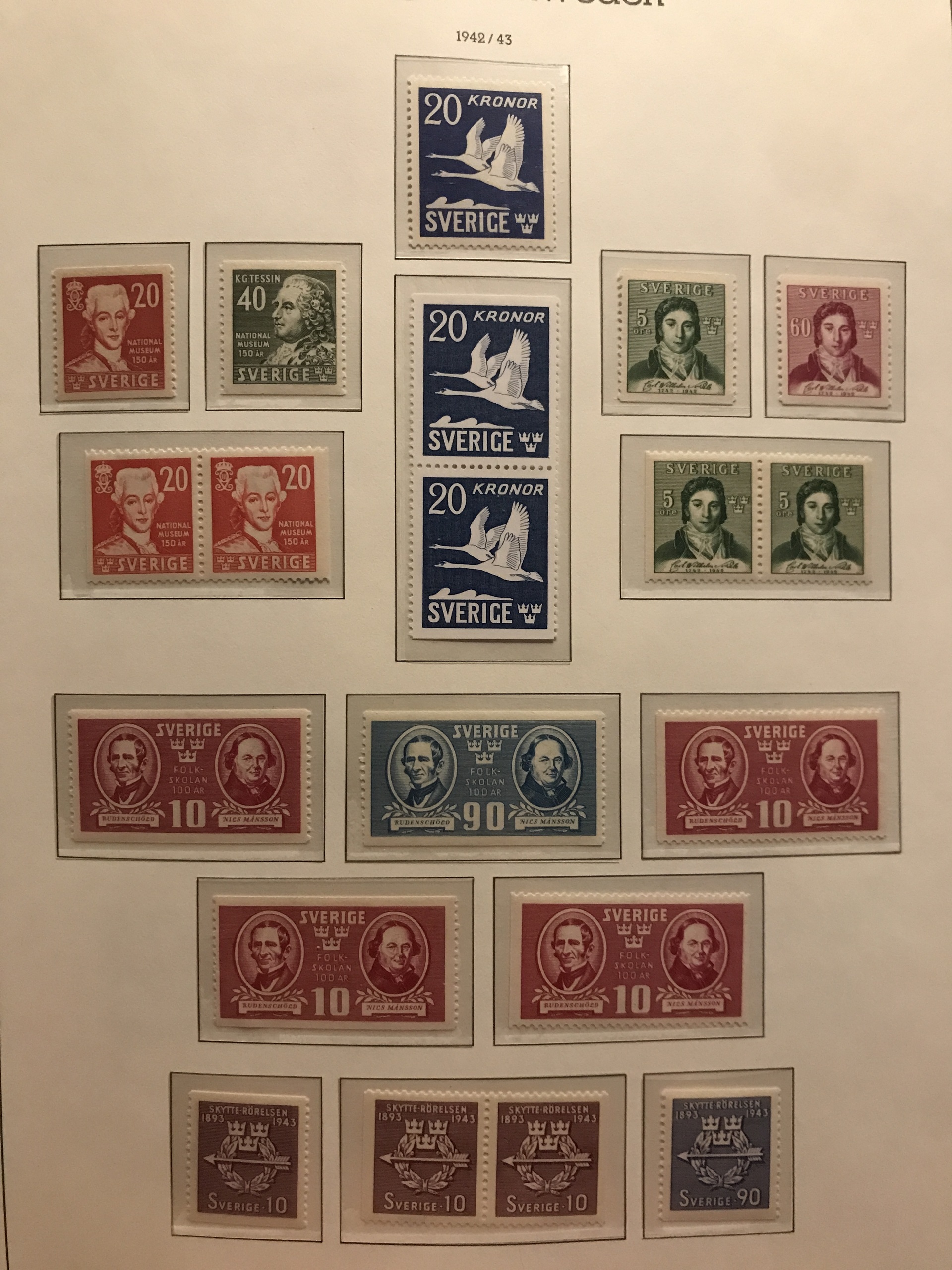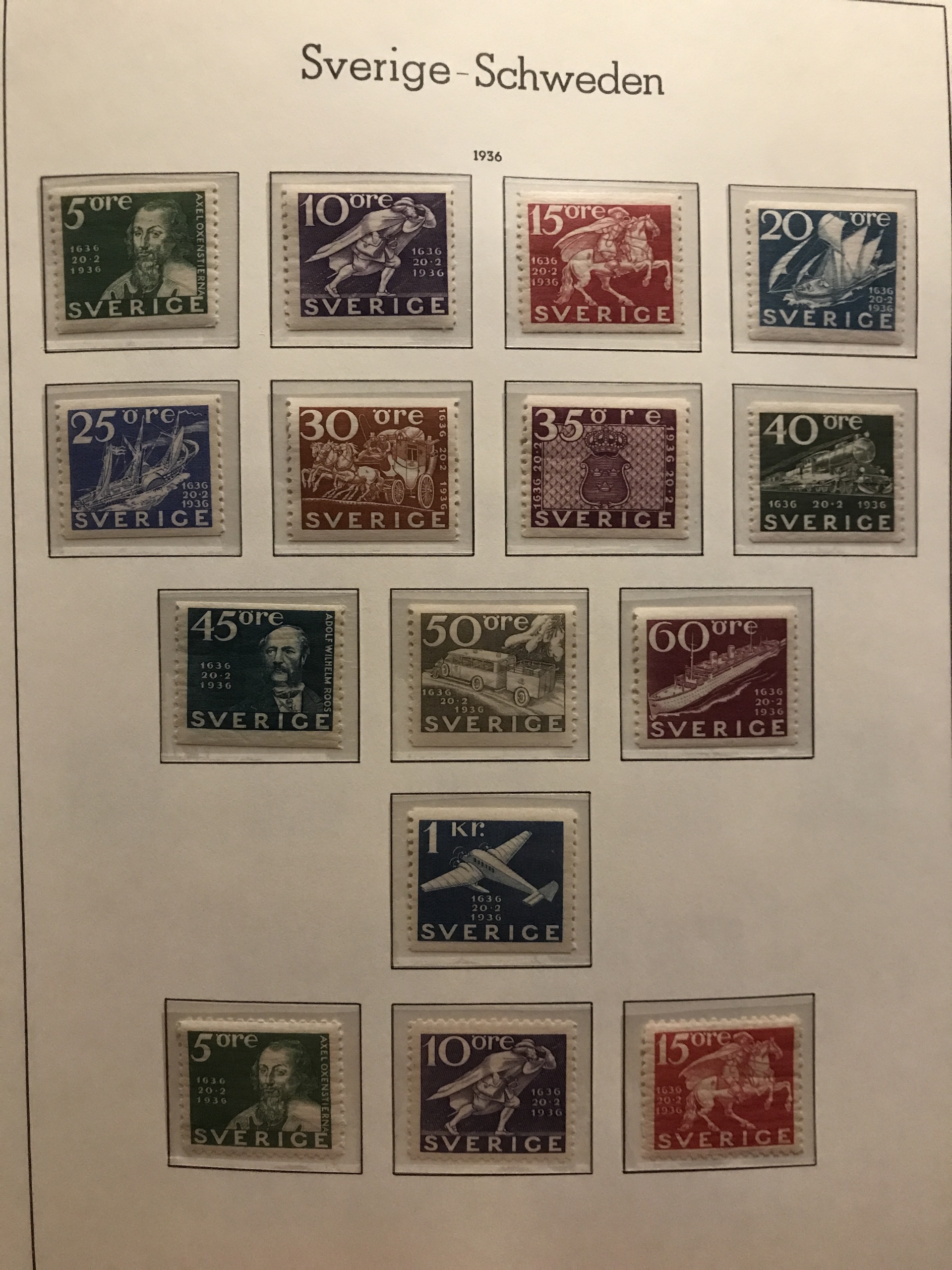 Sweden. ★★/★. Collection Oscar II–1980 in two Leuchtturm albums with slip cases. Containing e.g. cpl Oscar and good GV Medallion, some better Coil stamps, F223 **. Everything ** from 1928 incl. F234–58, 20 BC/CB-pairs and F337C, etc. Please see a selection of scans at www.philea.se.