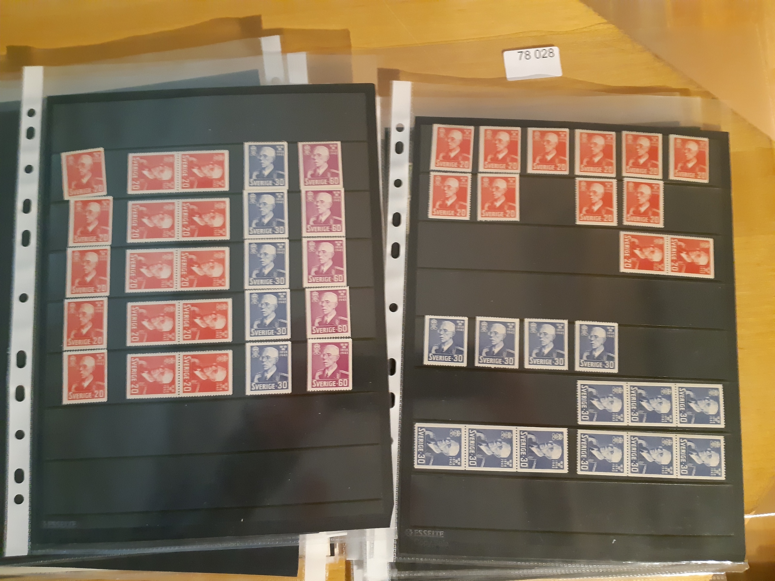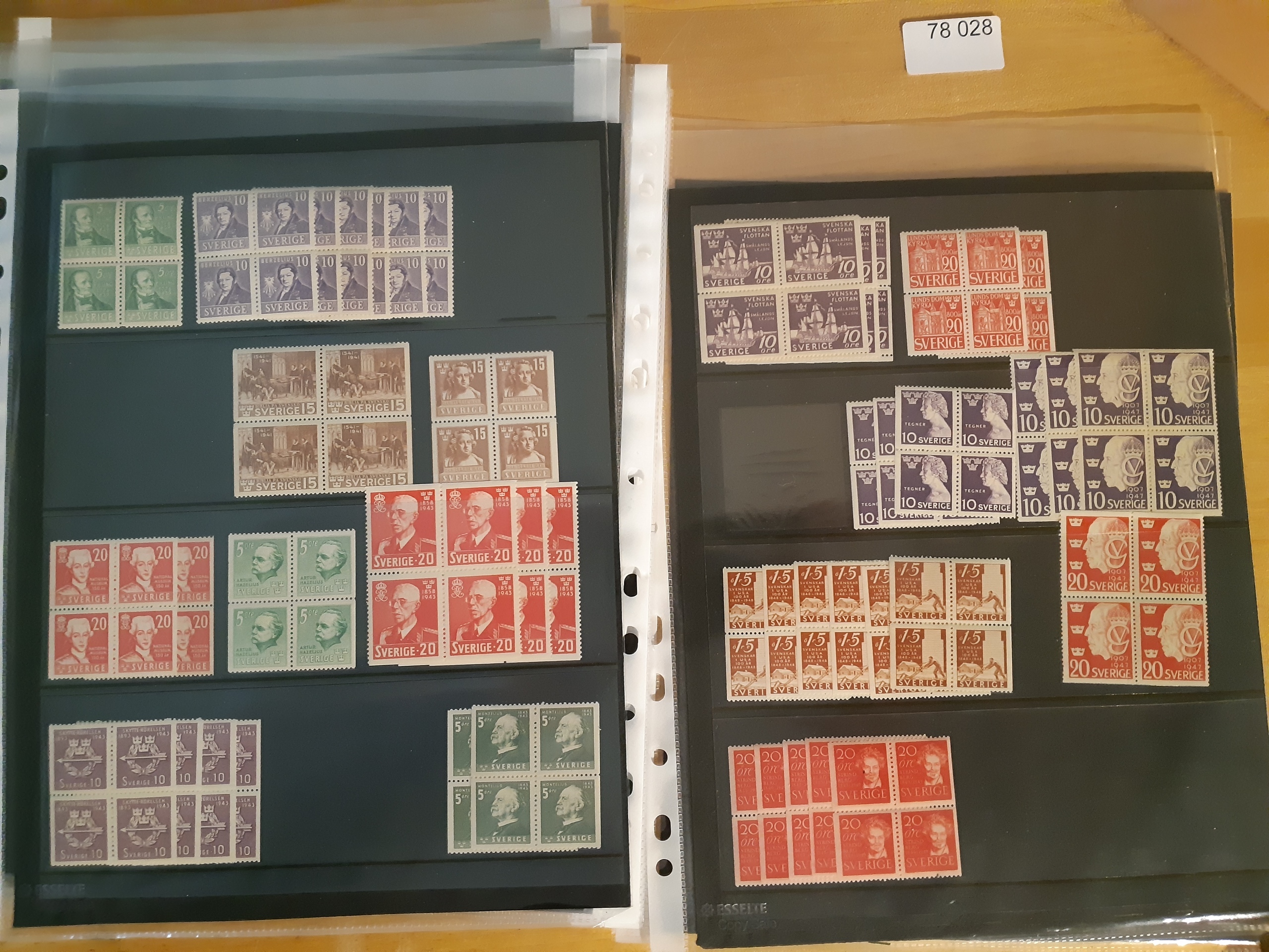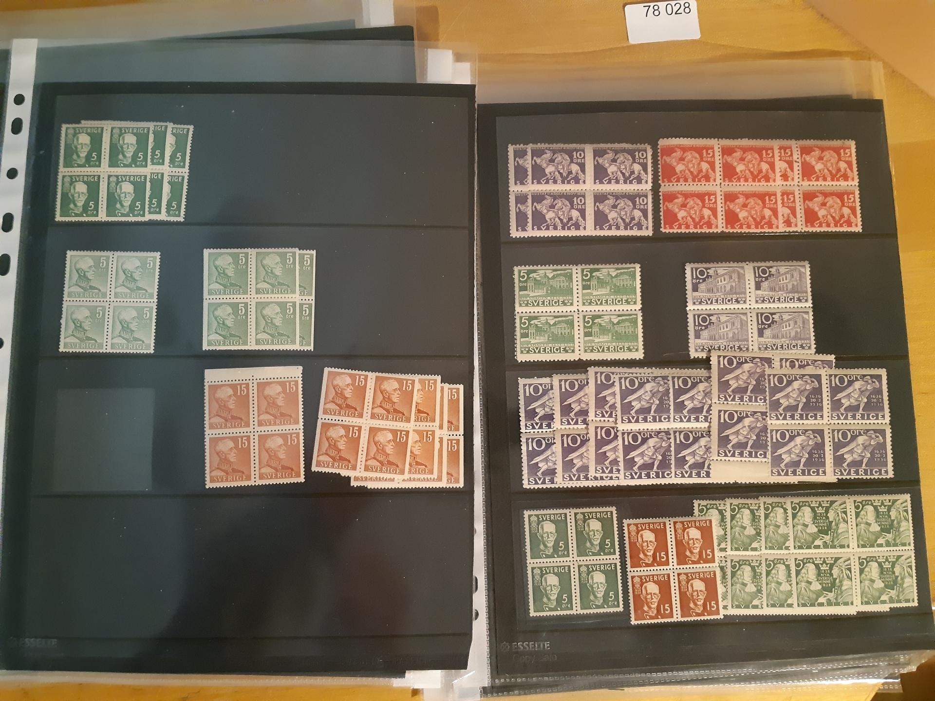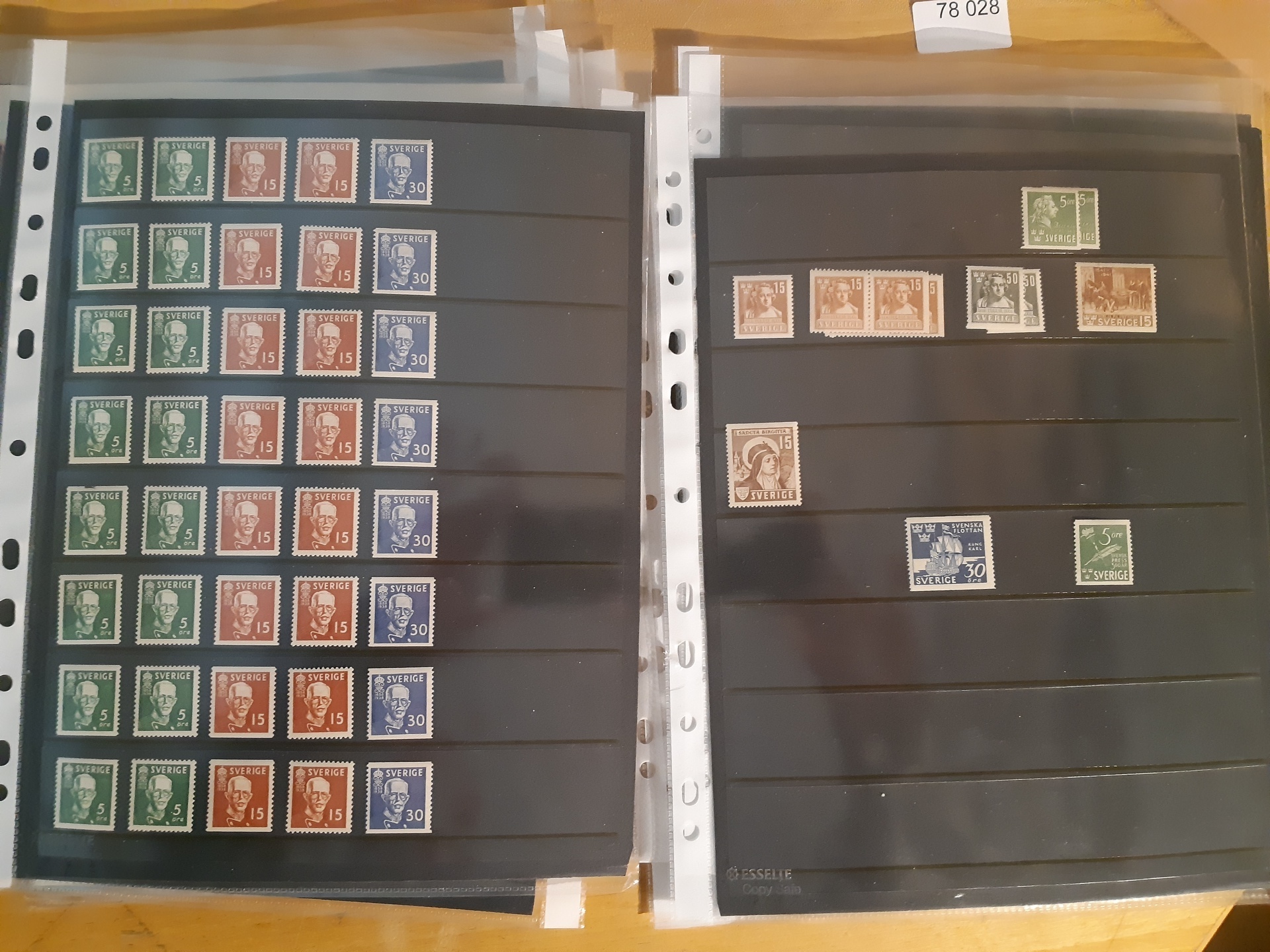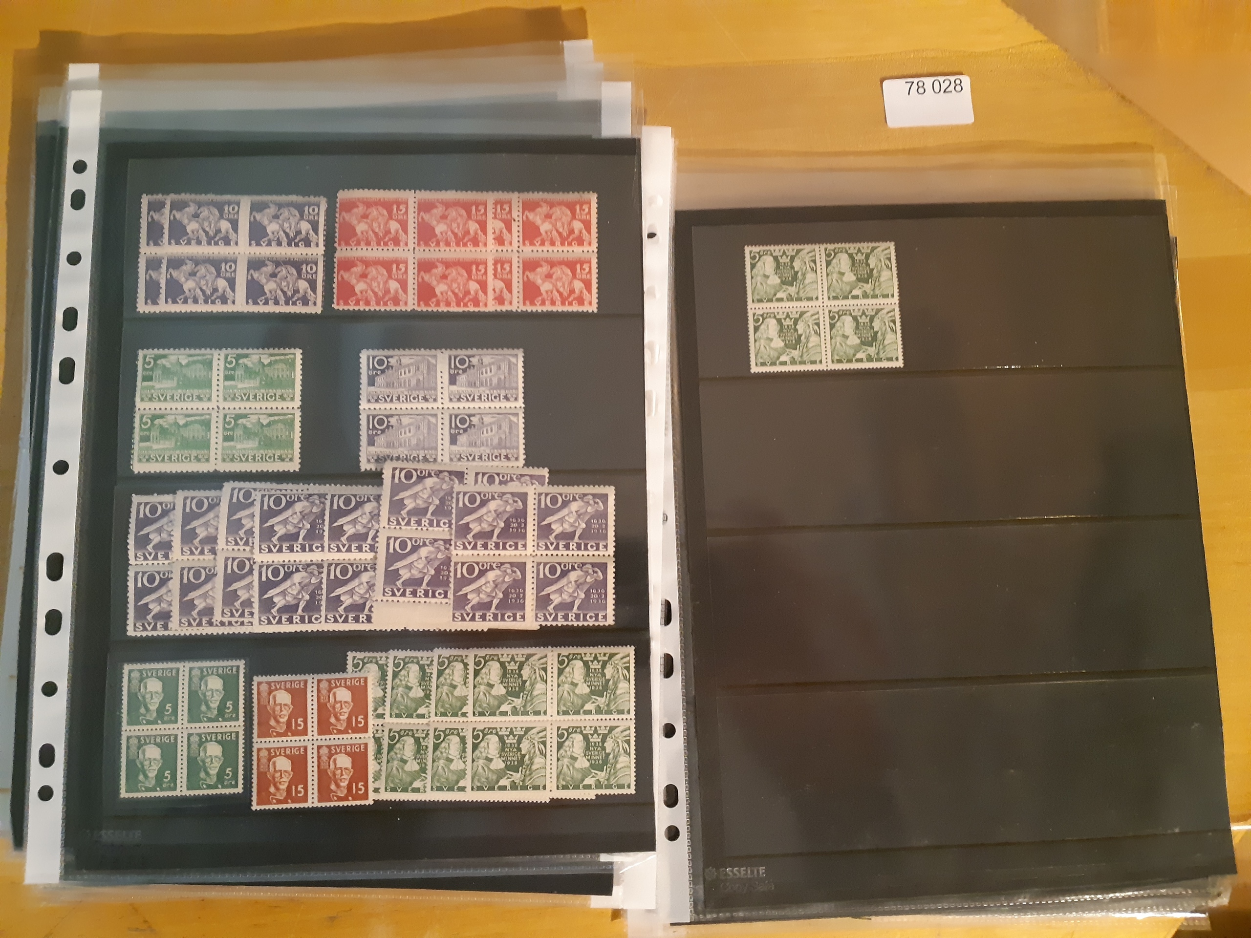 Sweden. Collection ★★/★ 1910s–1950s on leaves. Sorted duplicates incl. cpl. Congress and UPU *, blocks of four, etc. The entire lot is presented at www.philea.se. Good quality. (600)