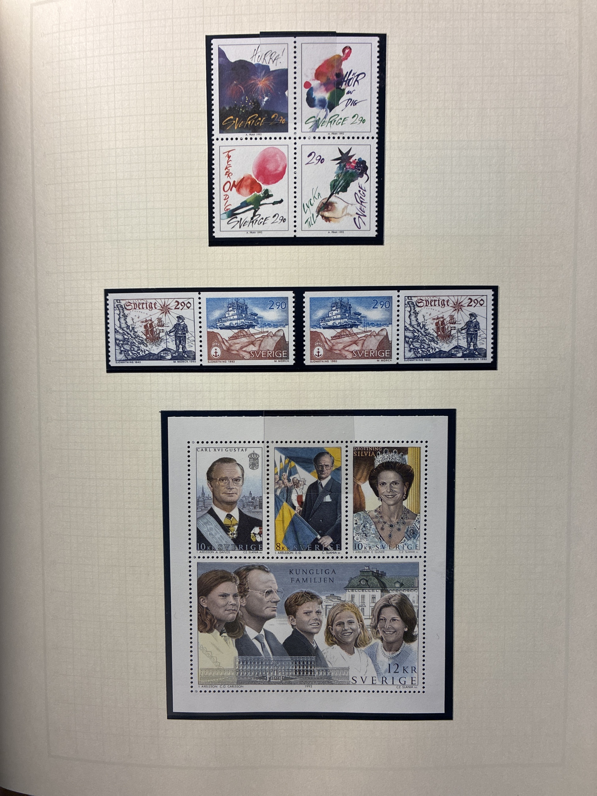 Sweden. Collection ★★ 1970–1996 in large album with stamp mounts. Leuchturm album with beauteful mounted leaves. Excl. discount stamps. Please see a selection of scans at www.philea.se. Please see a selection of scans at www.philea.se. Fine quality. (1200)