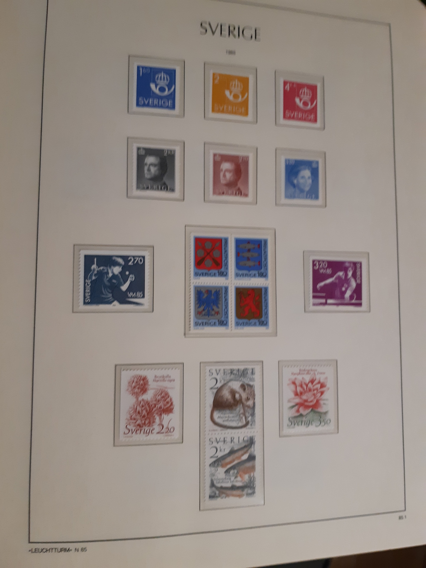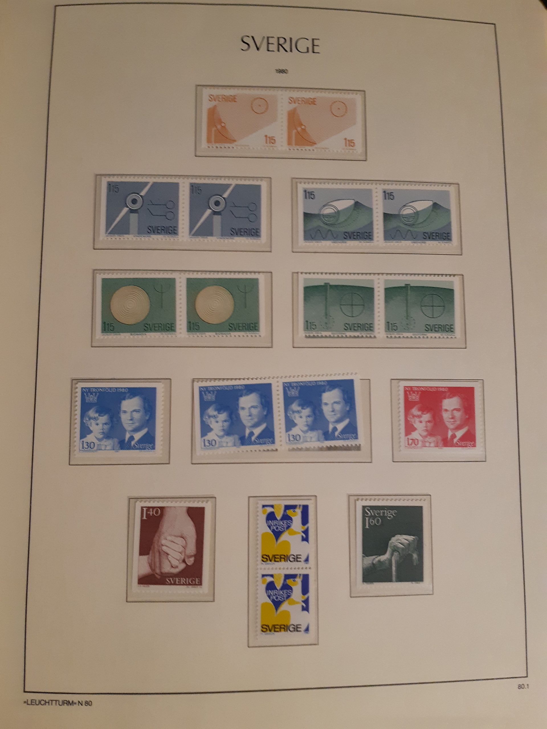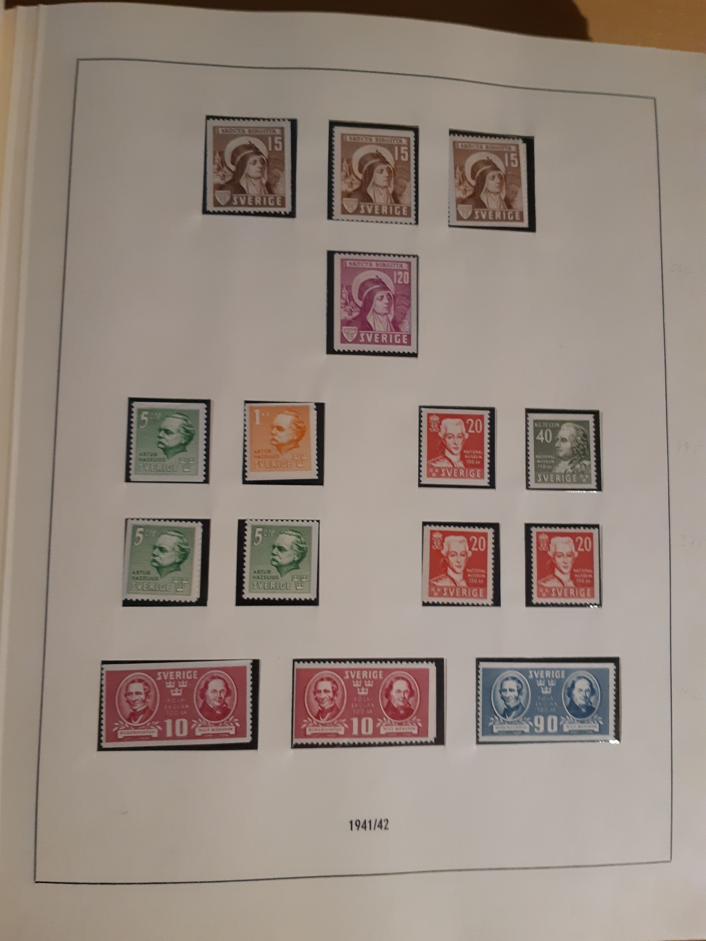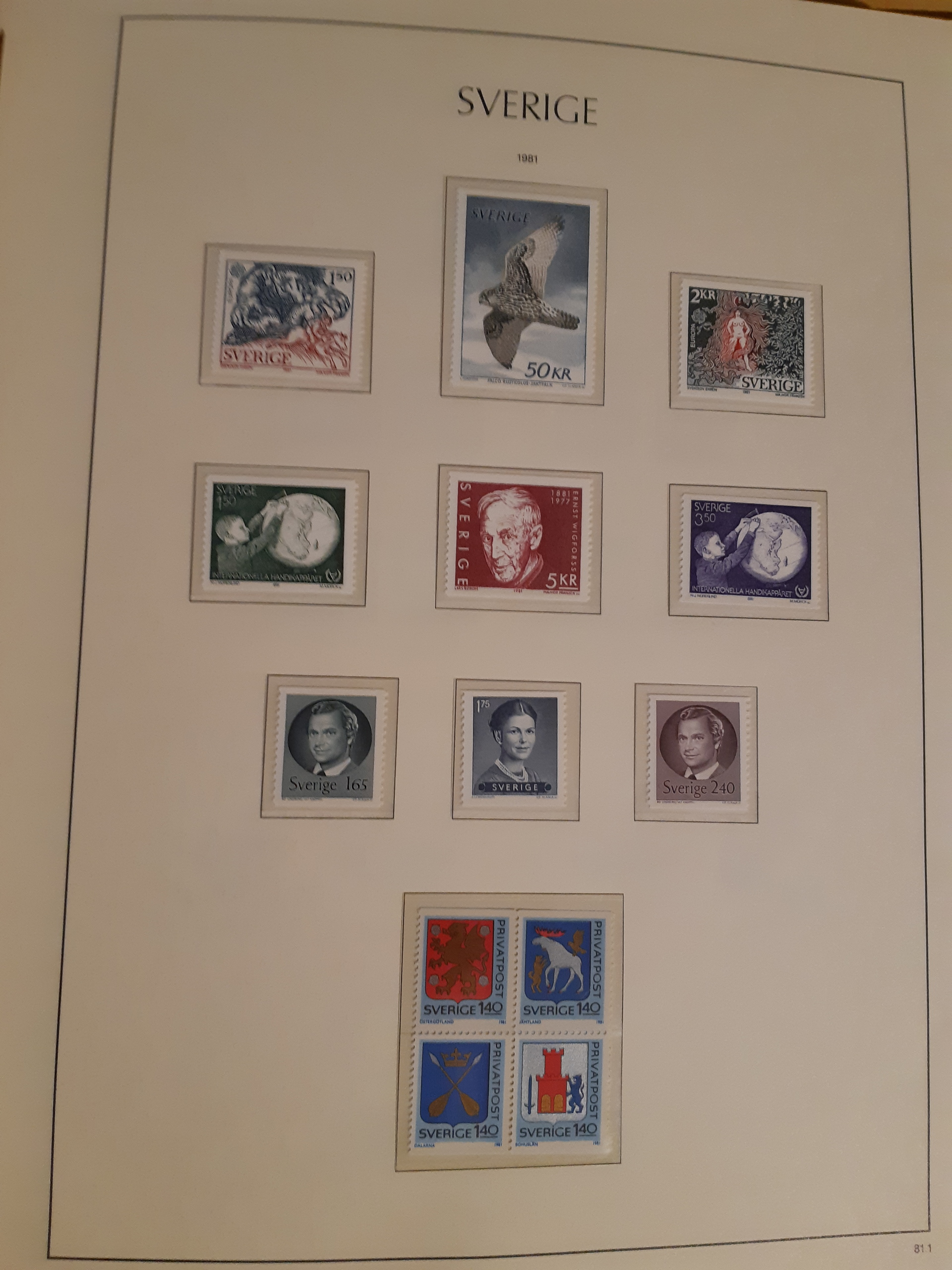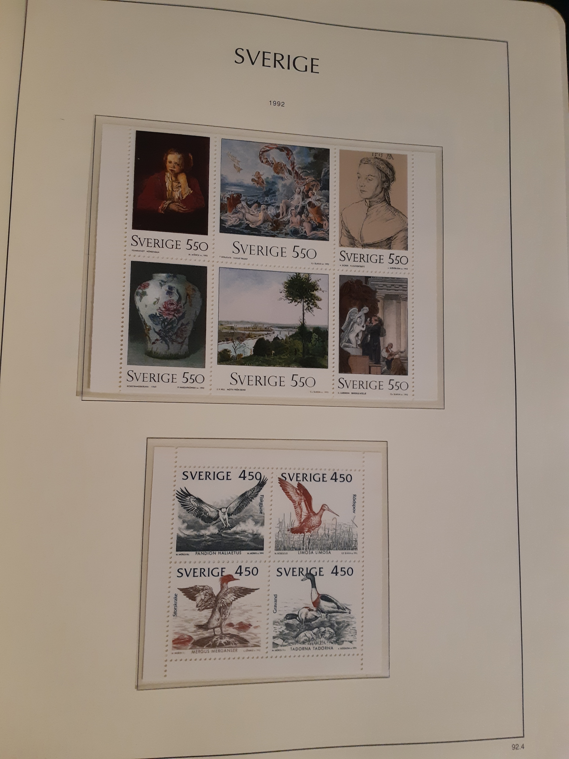 Sweden. Collection mostly ★★ 1938–1992 in two albums. Incl. e.g. discount stamps, pairs, blocks and a few booklets. Fine quality. Approx. 6 kg.