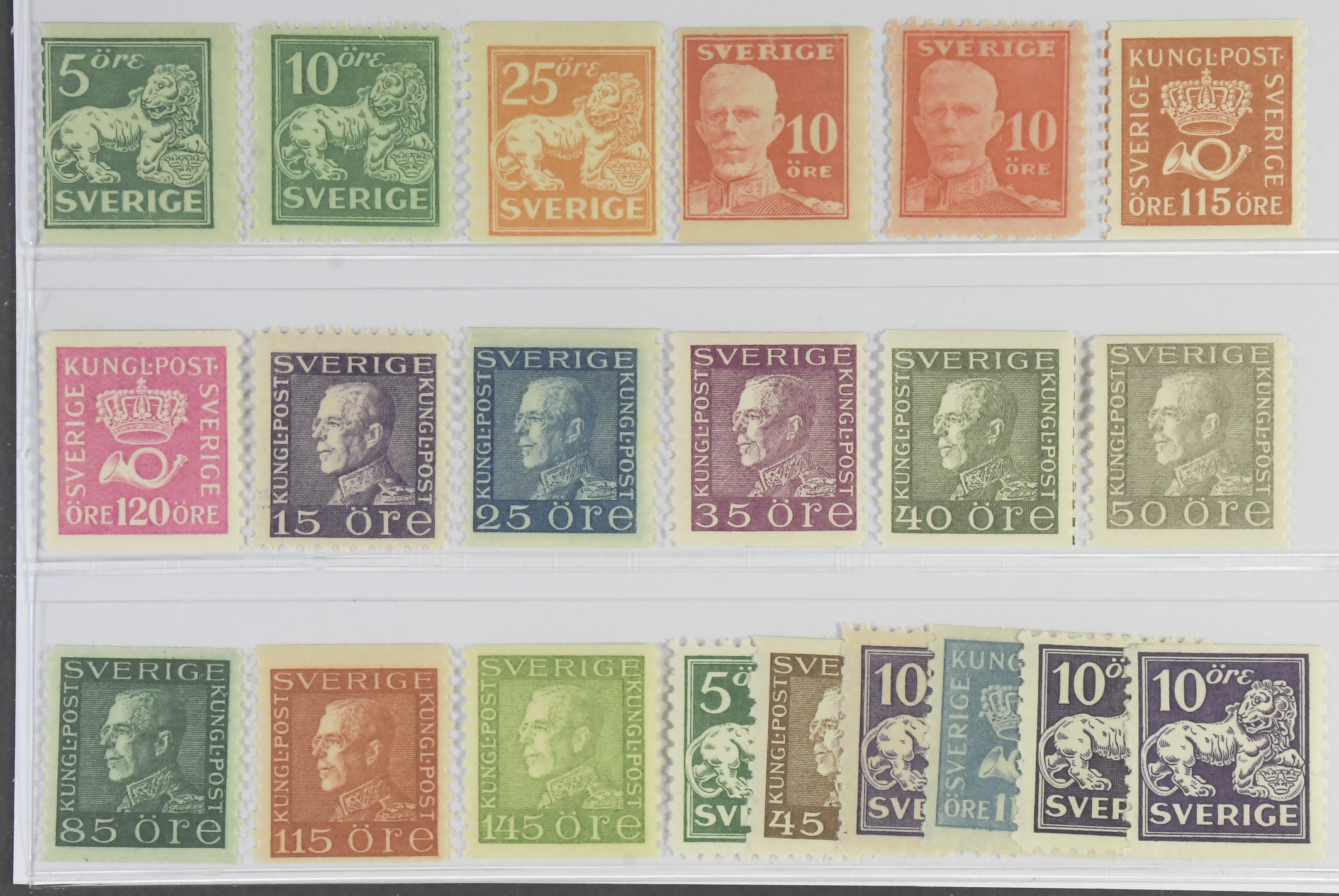 Sweden. ★★ 1920–1936. Coil stamps. All different, e.g. F 140A, 144C, 147, 149A+C, 170A3, 172A3, 175C, 183a, 187A3, 190A3, 192a, 193–95. Mostly good quality. F SEK 8700 (21)