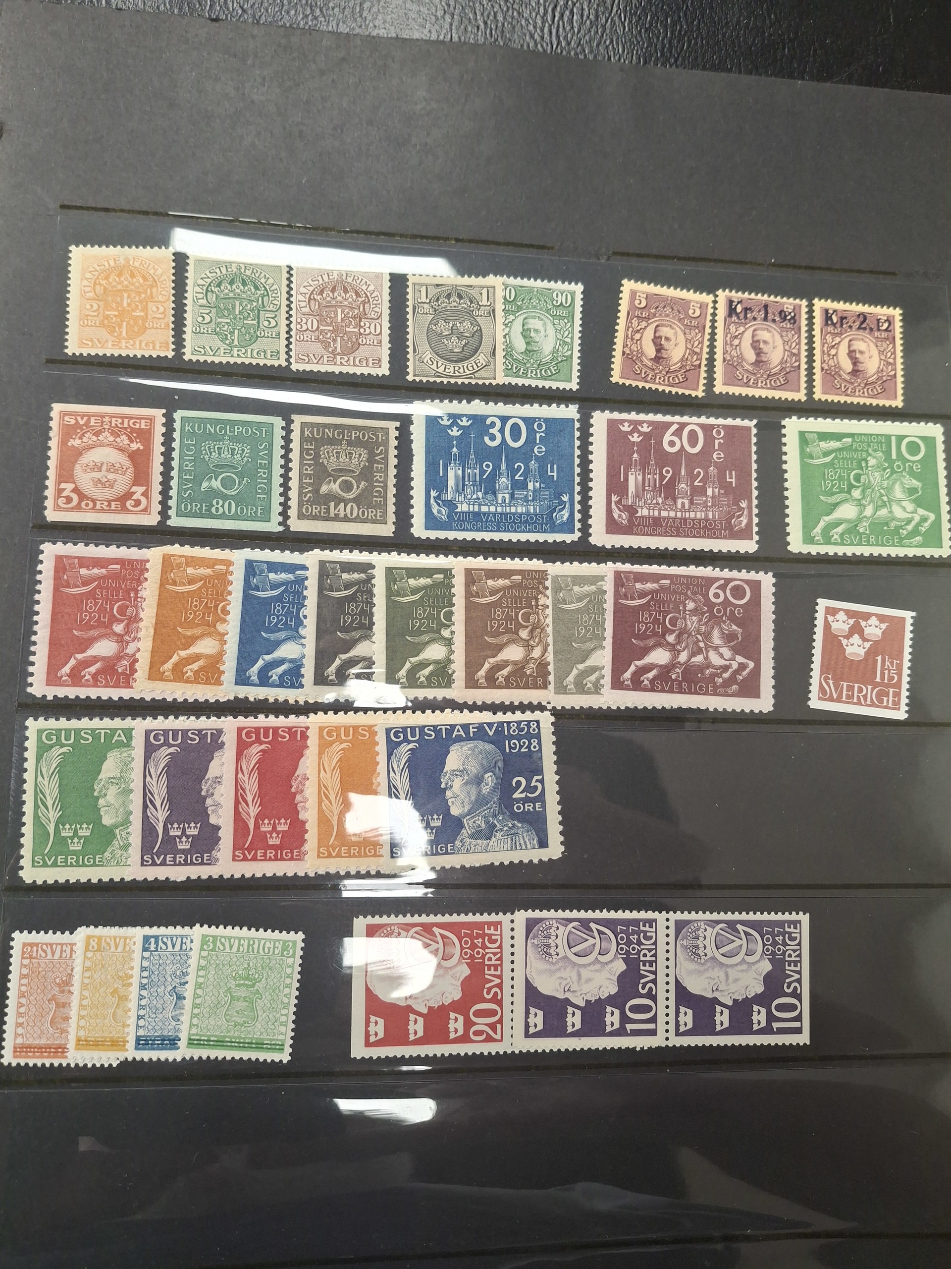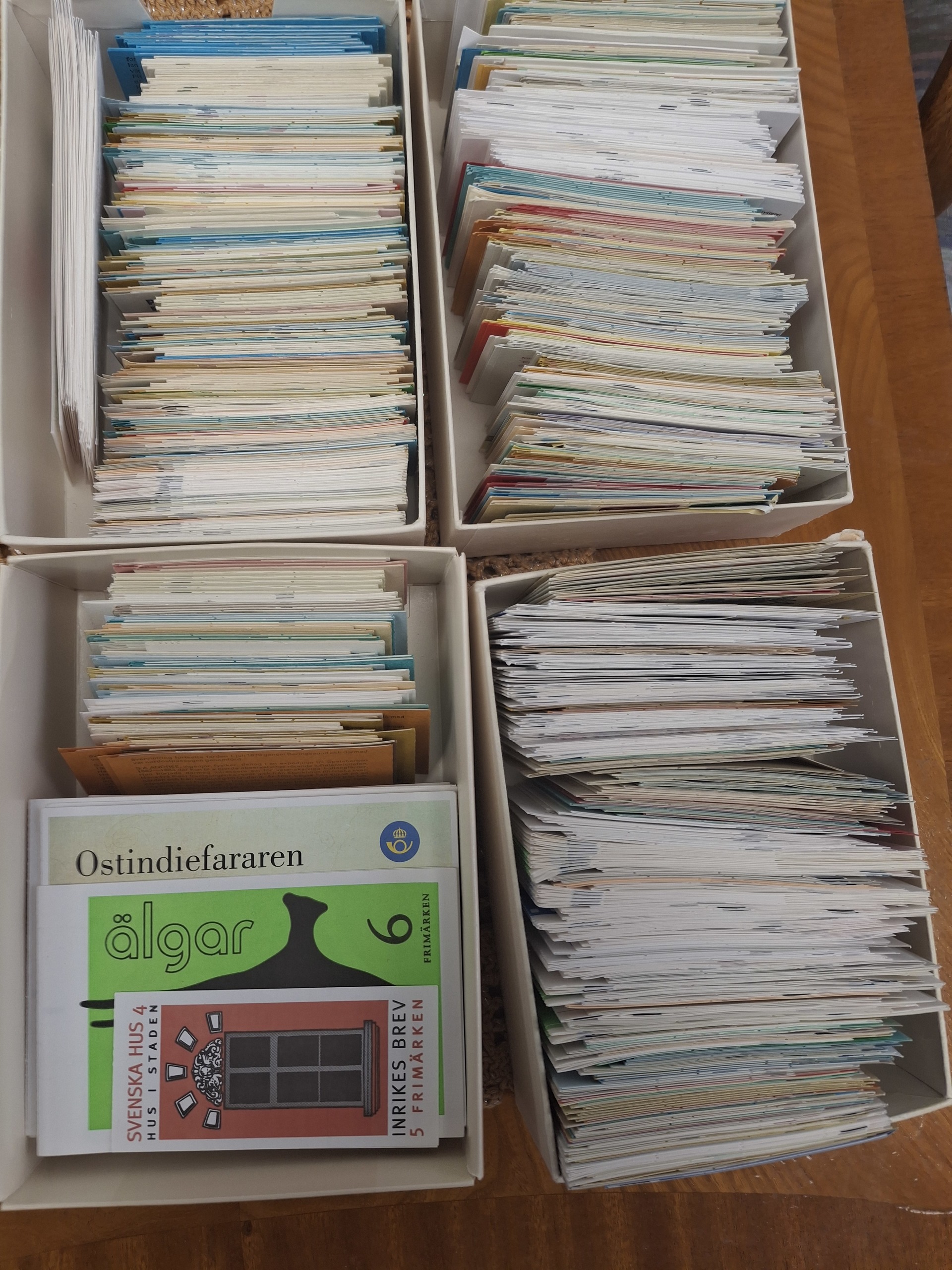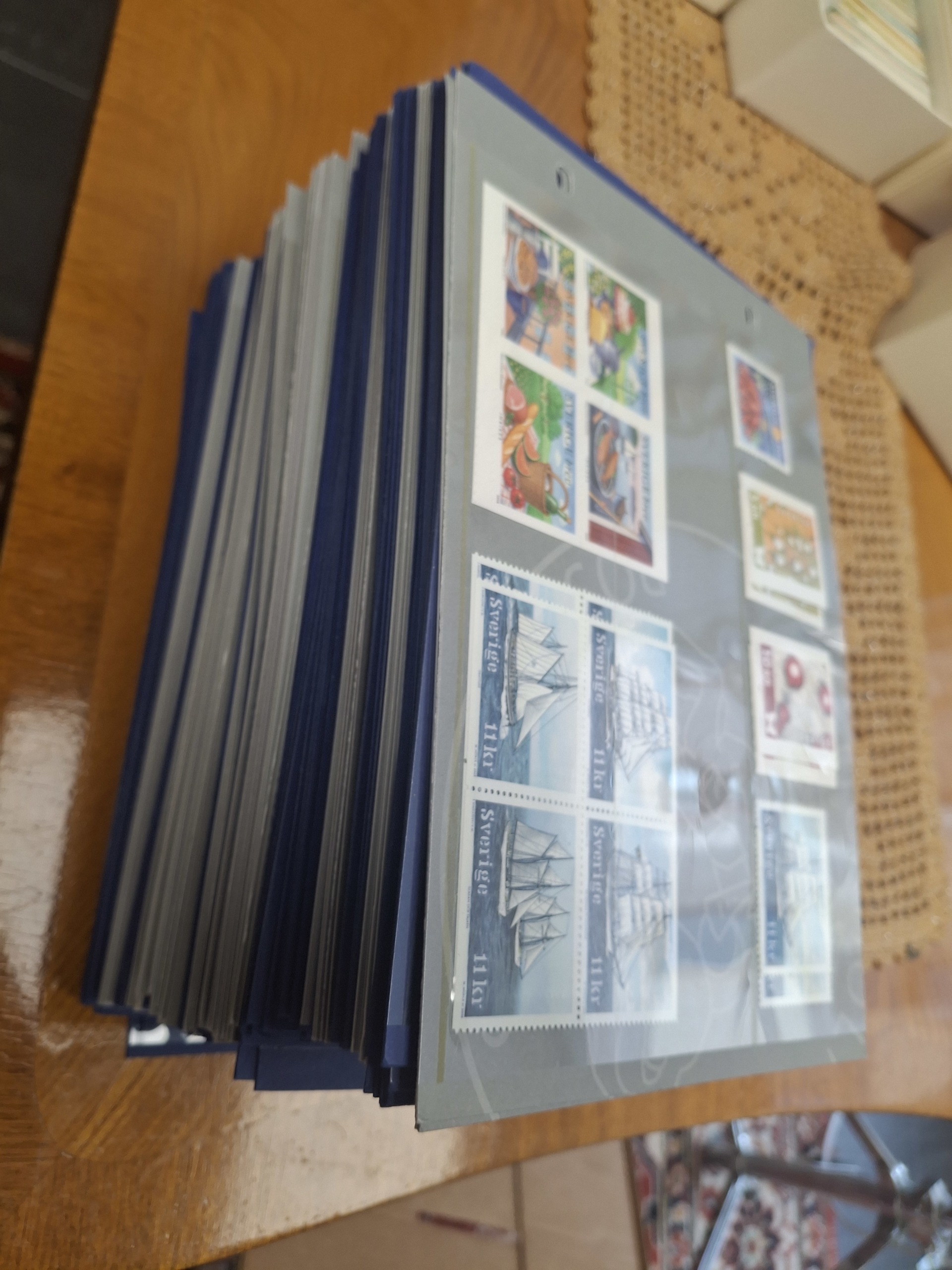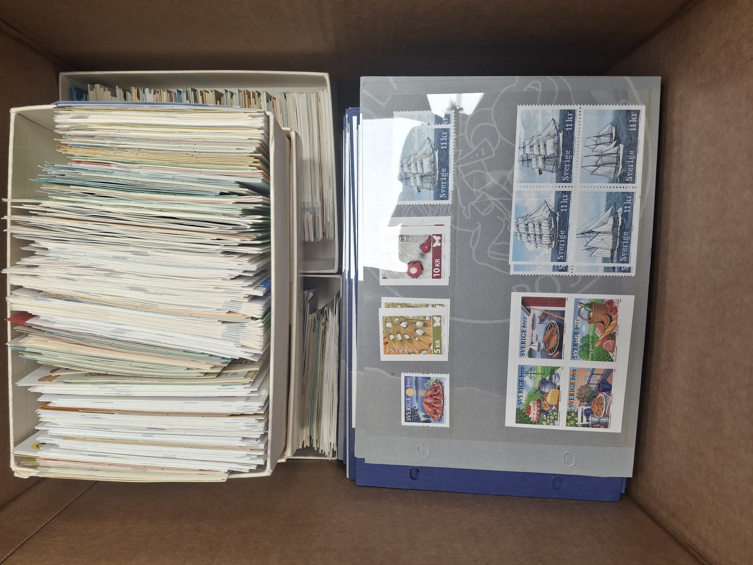 Sweden. Face value, accumulation. Box with est. face value at least, 40,000 SEK. Half lot consists of "brev" (700), christmas (250) and economy (100) stamps). The rest in stamps with fixed denominations. Approx. 6 kg. (1000s)