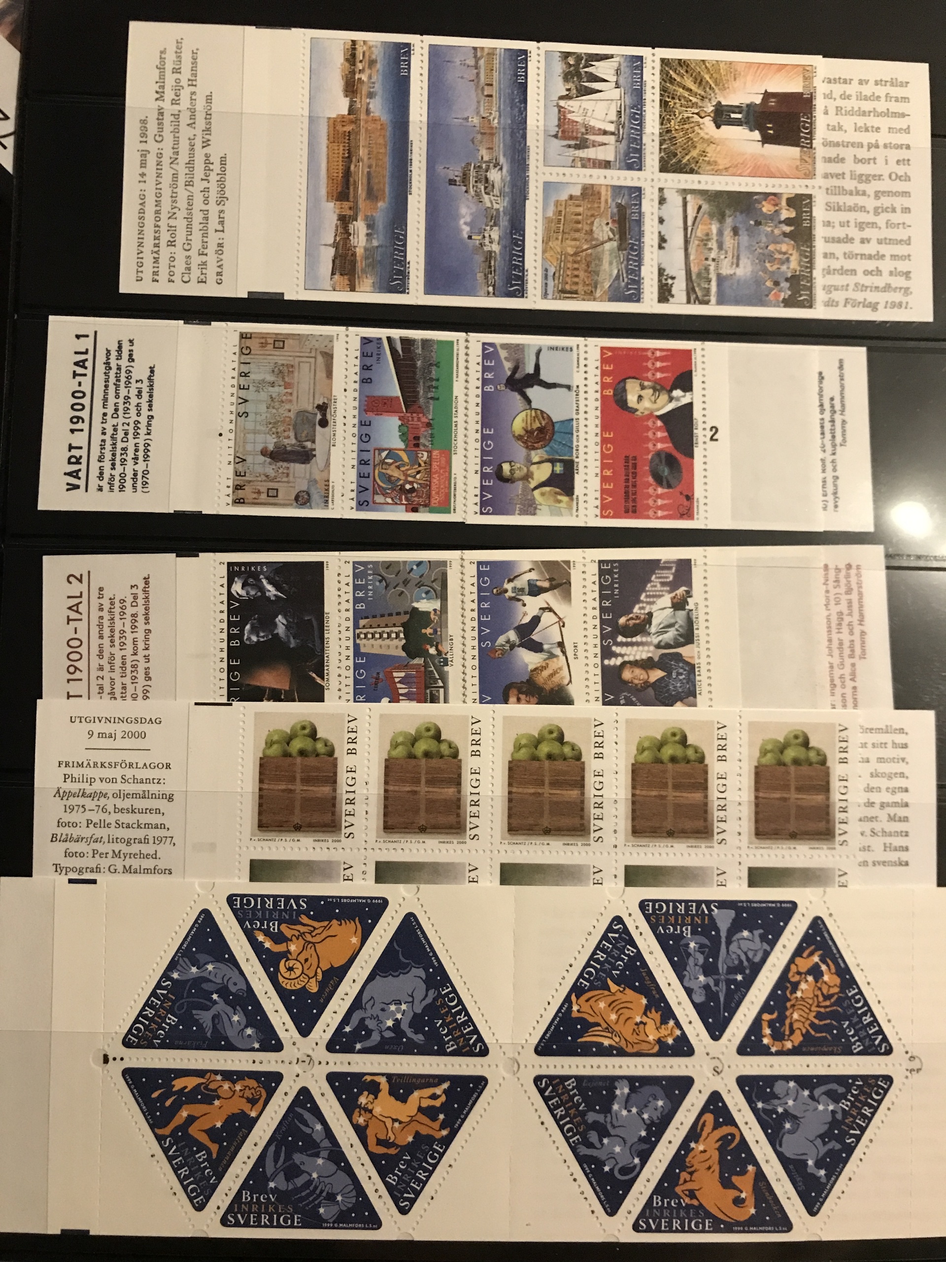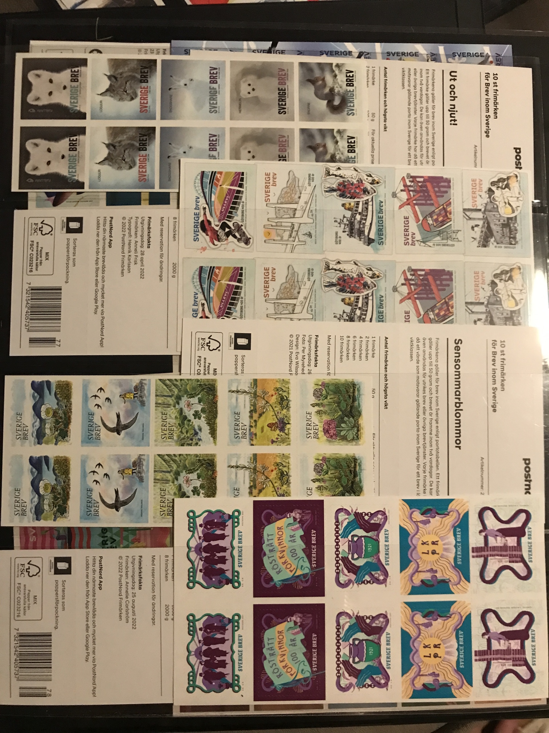 Sweden. Face value. Collection with 93 different booklets 'Sverige BREV' 1997–2022. In total 874 stamps = face value 19228. Please see a selection of scans at www.philea.se.