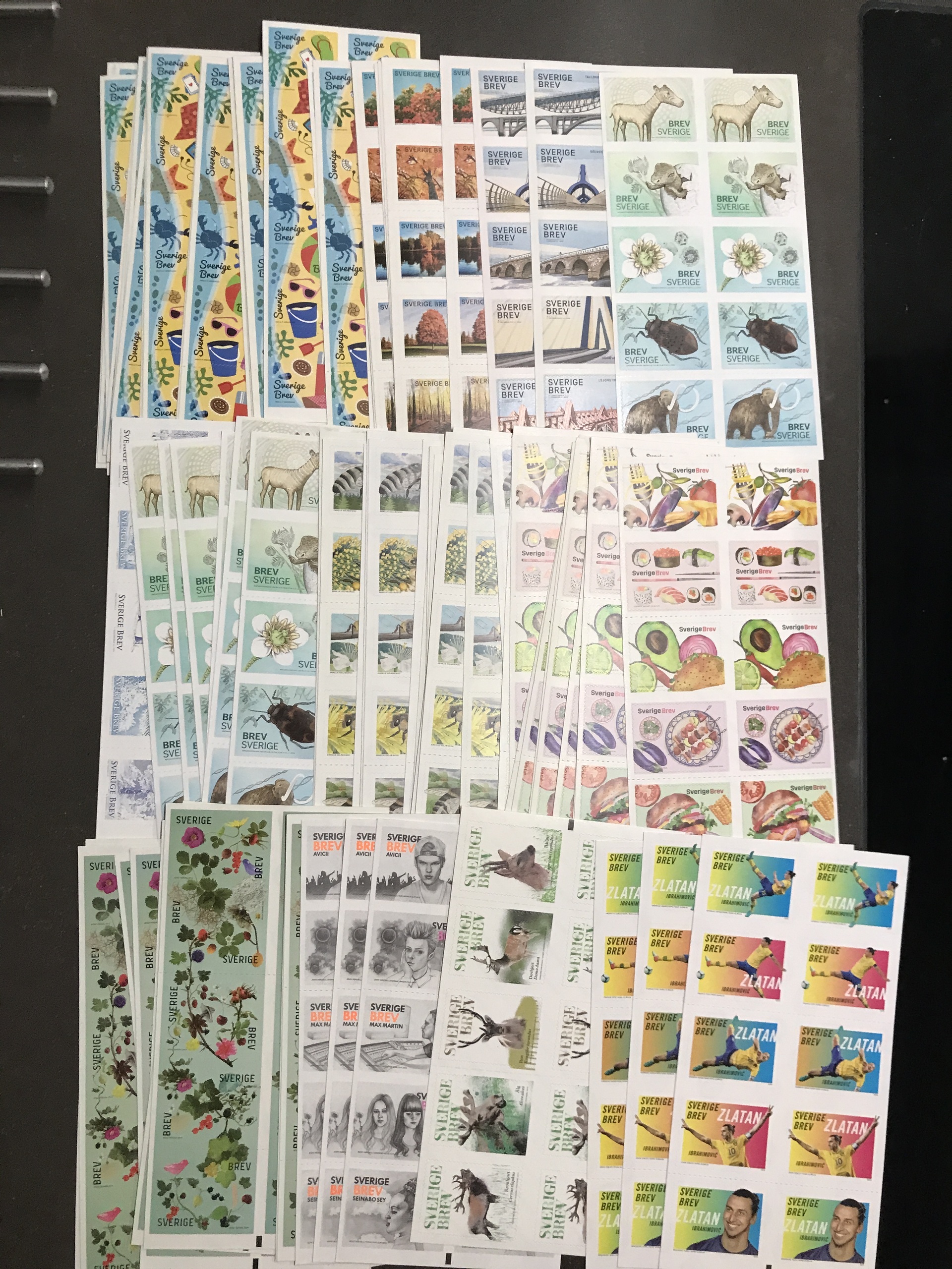 Sweden. Face value. 80 booklets = 800 self-adhesive stamps 'Sverige BREV'.