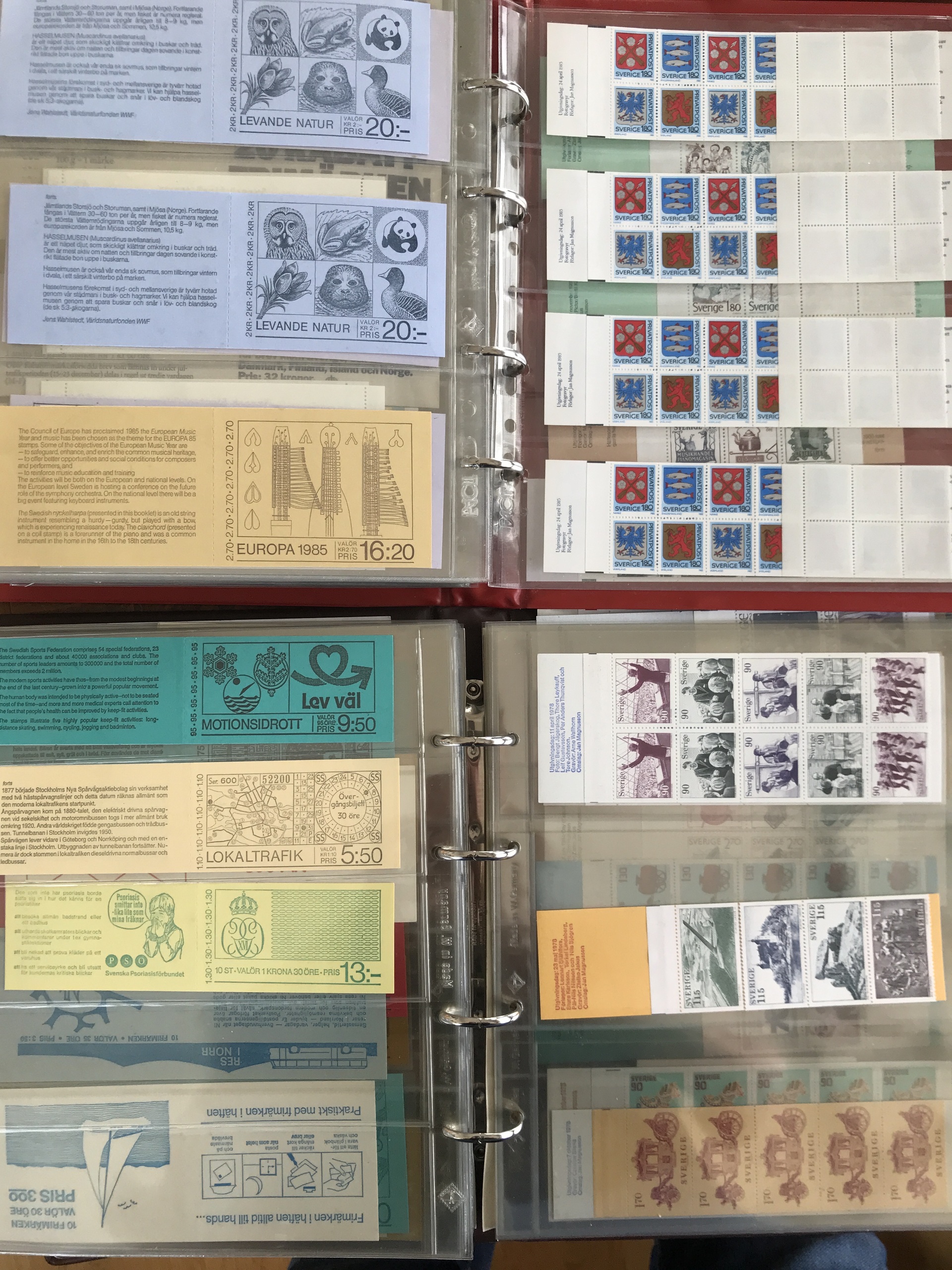 Sweden. Face value. Two binders with booklets mostly 1970s–1980s. Face value >3900 + 32 discount booklets.