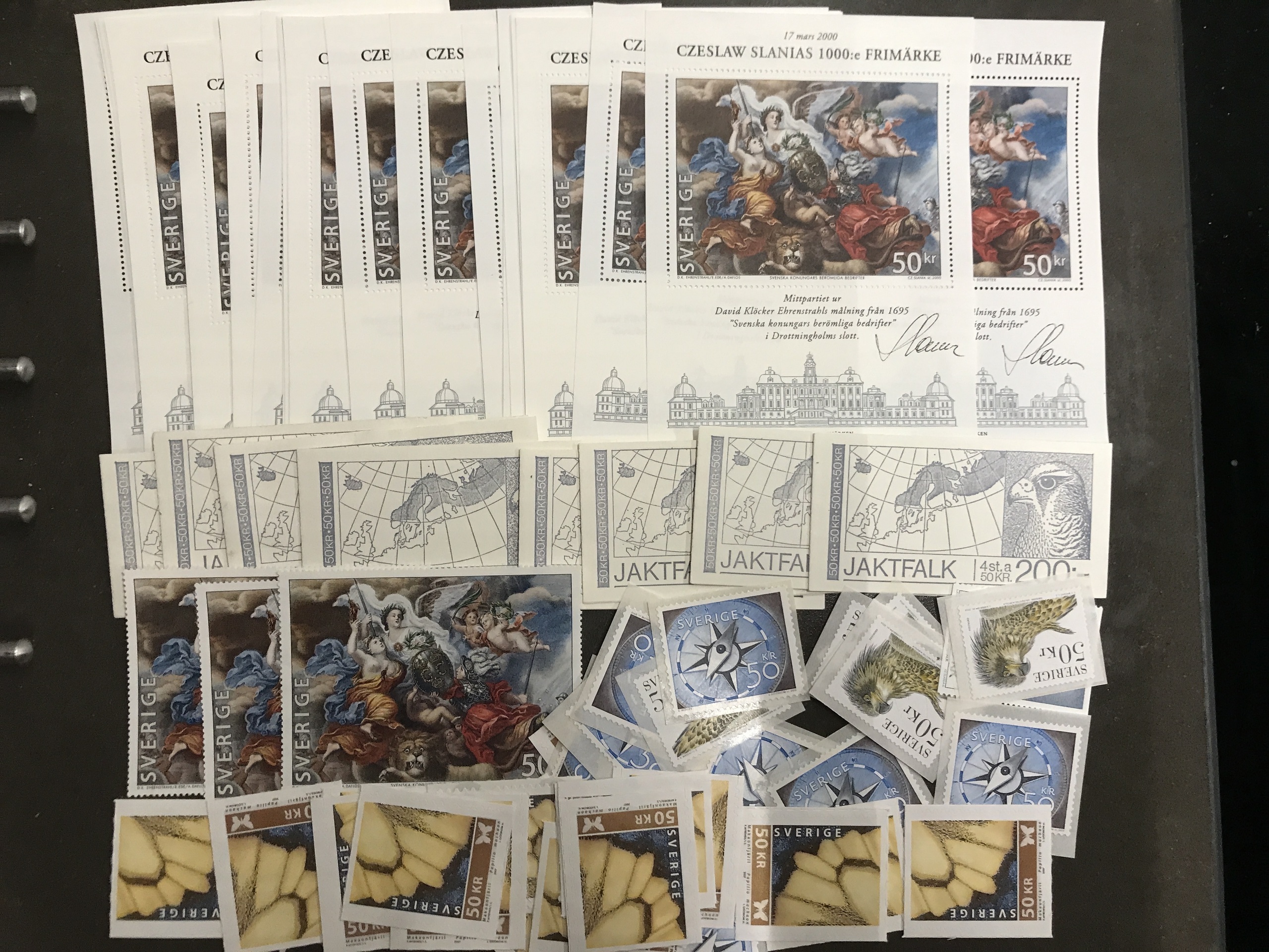 Sweden. Face value. 95 stamps à 50 kr incl. 23 souvenir sheets Slania, etc. Face value 4750.