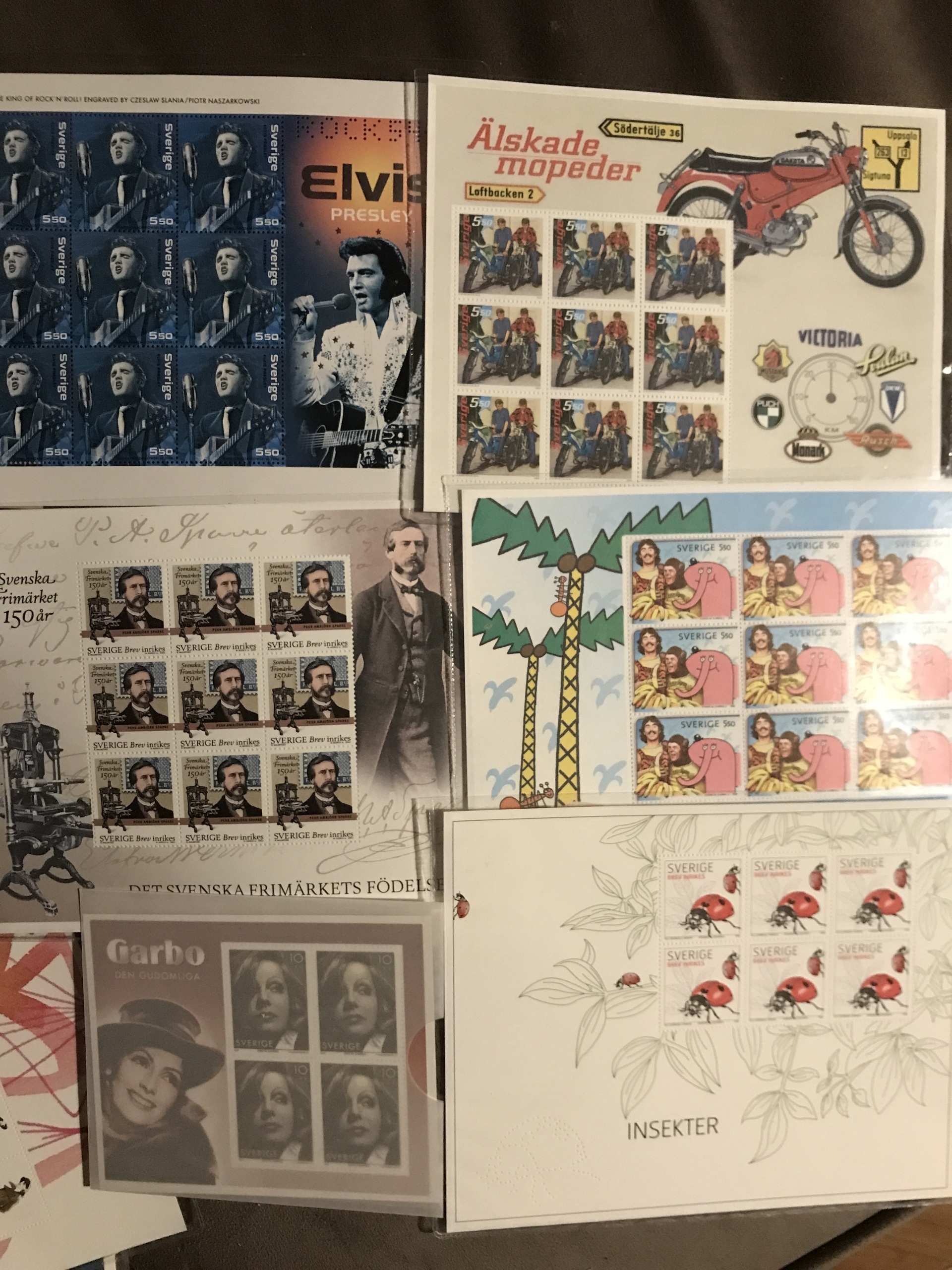 Sweden. Face value. 37 different souvenir sheets 2005-2023 SS1-43 incl. SS3 Garbo and SS33 Retro-stringshelf etc. Face value ca 3500. Please see a selection of scans at www.philea.se.