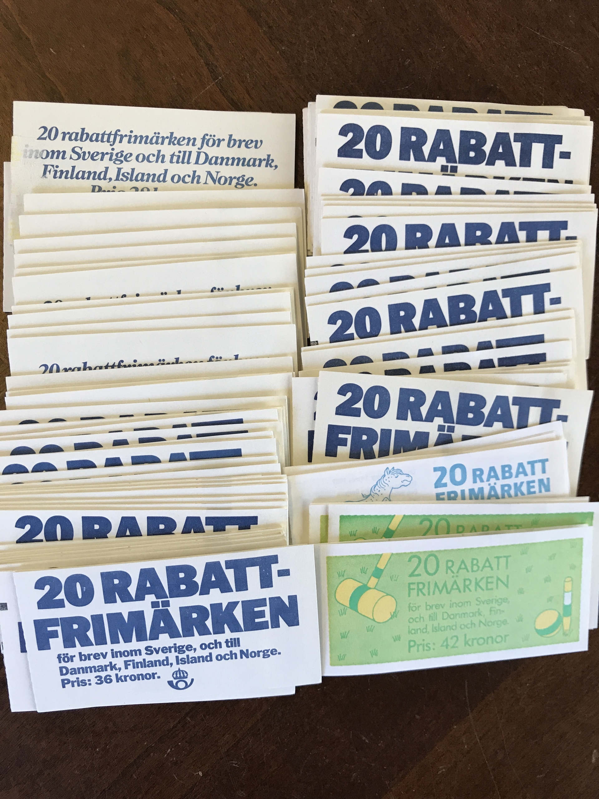 Sweden. Discount stamp booklets. 70 booklets 1981–1989.