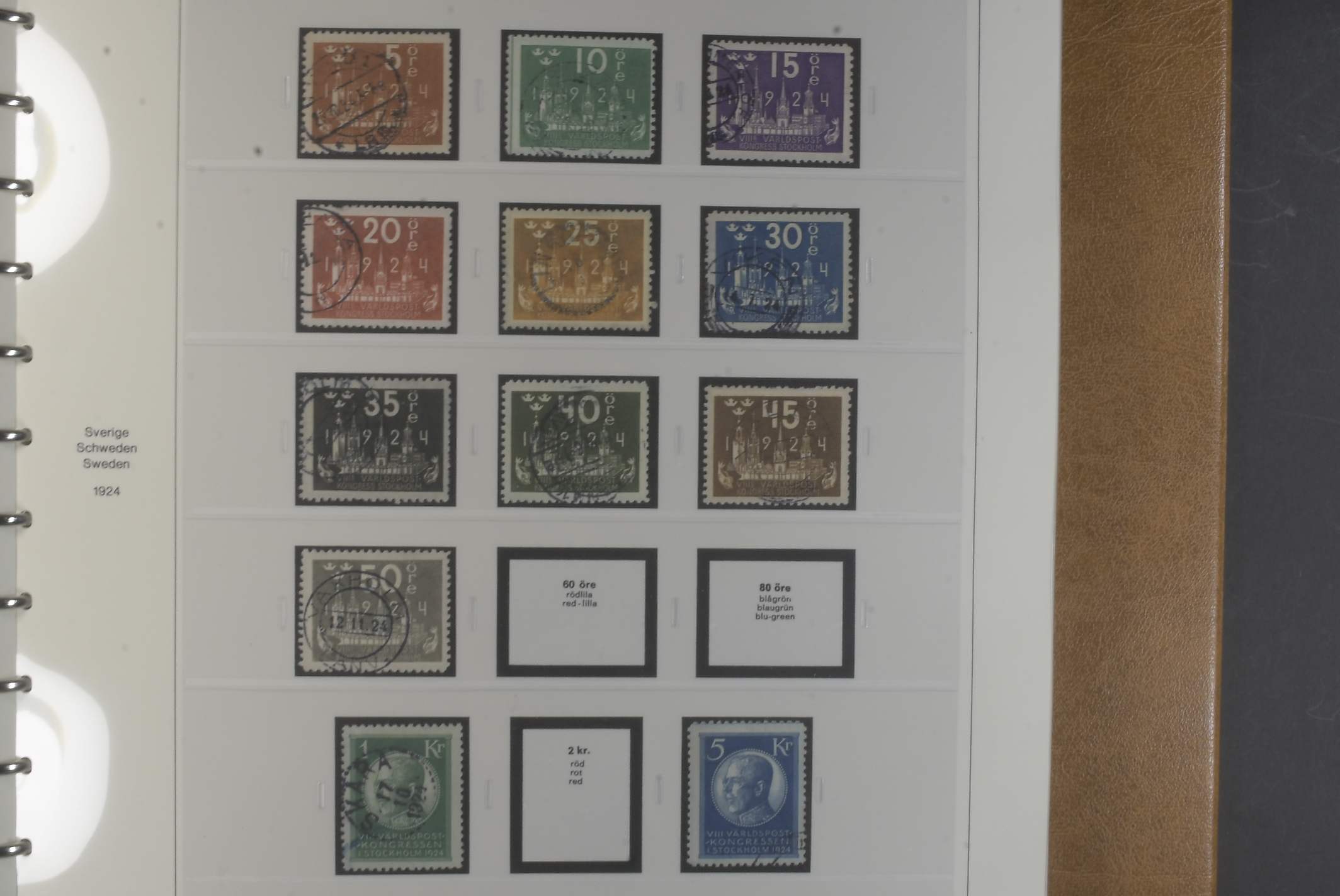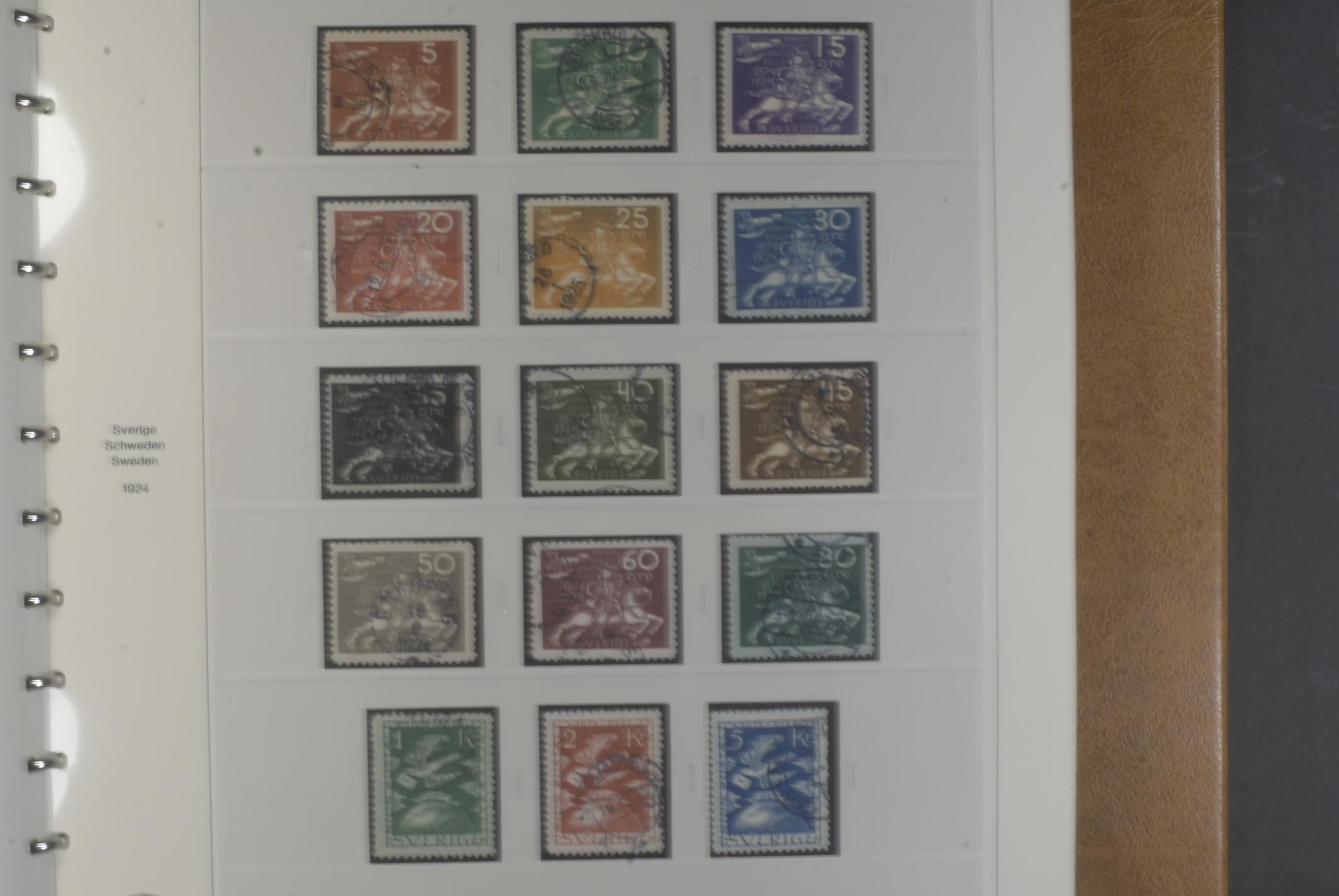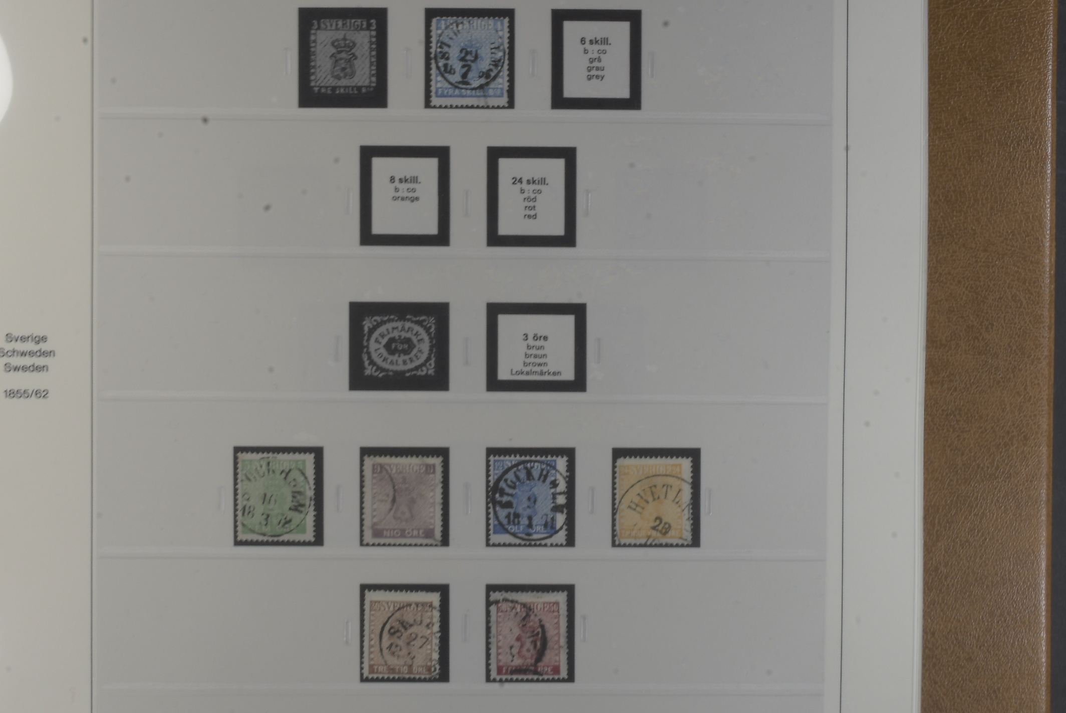 Sweden. Collection used 1855–1959 in SAFE album. Wellfilled Coat-of-arms 4s and complete set ore, good range of circle type and some better UPU. incl. both 5kr.