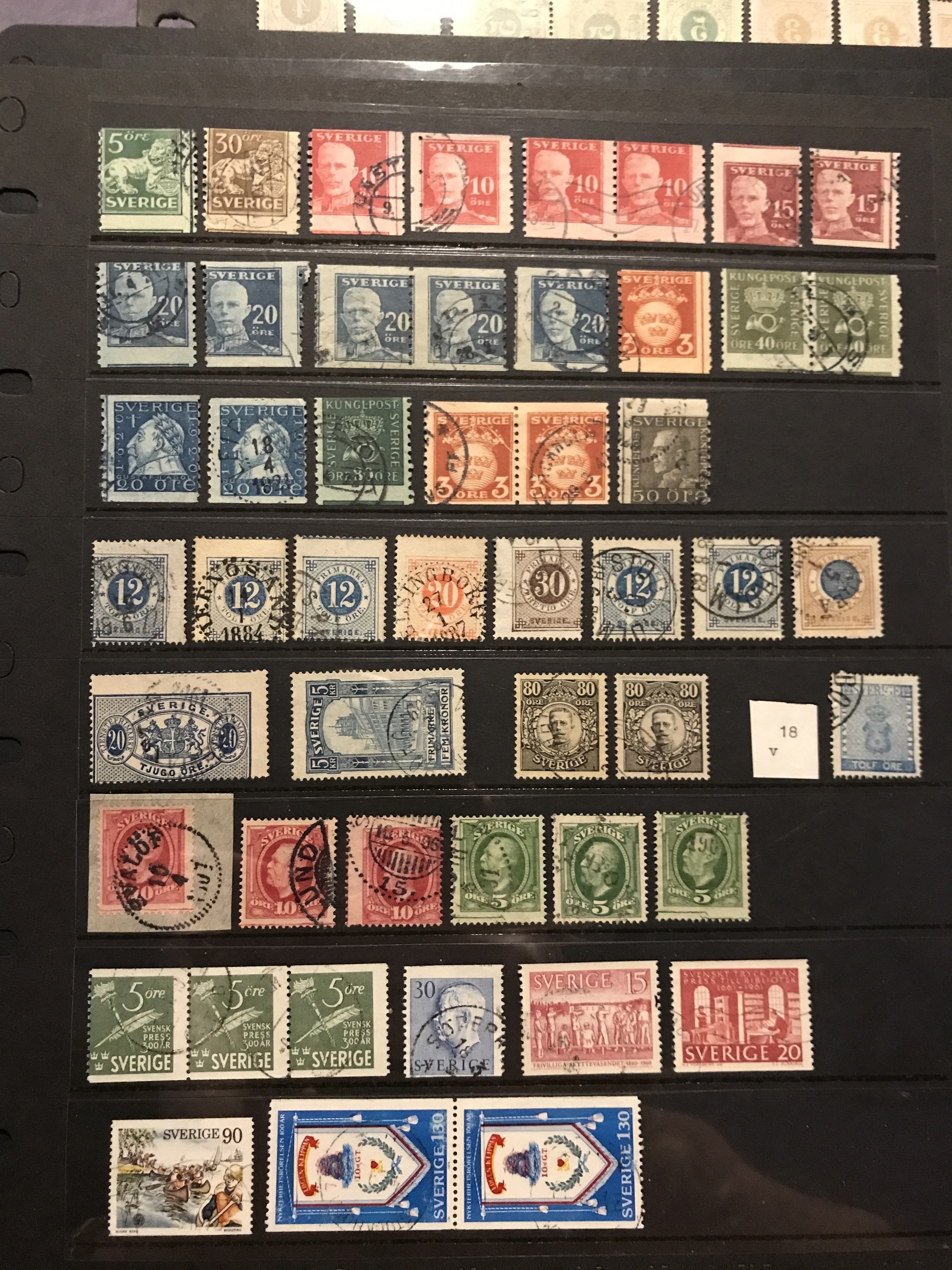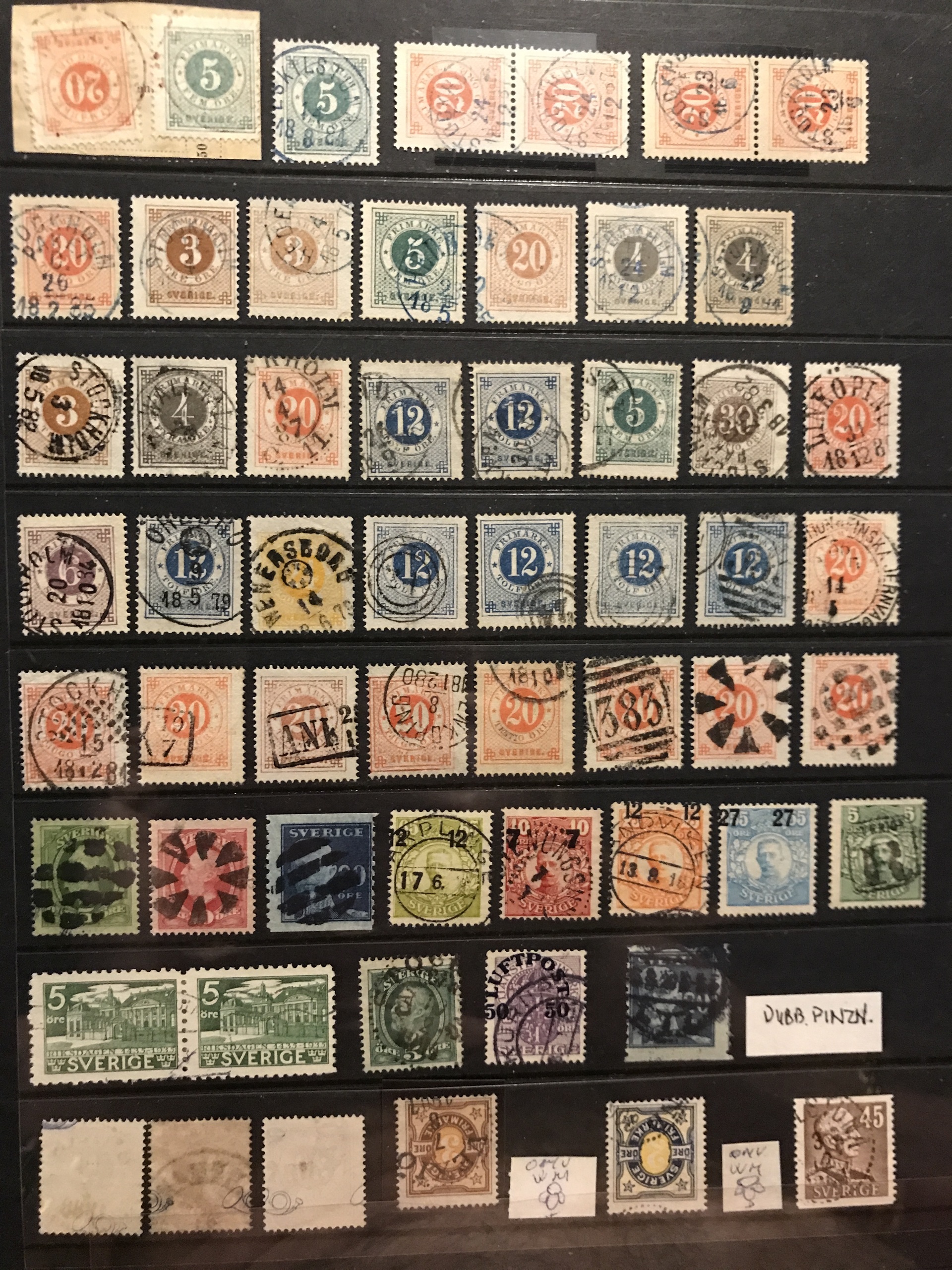 Sweden. Used. Interesting lot with varieties on three Visir leaves. Containing several set-offs incl. some partial, 17 Circle types with paper fold, wrong perforated, joining-lines, cancellations, F65vm1, etc. The entire lot is presented at www.philea.se. (160)