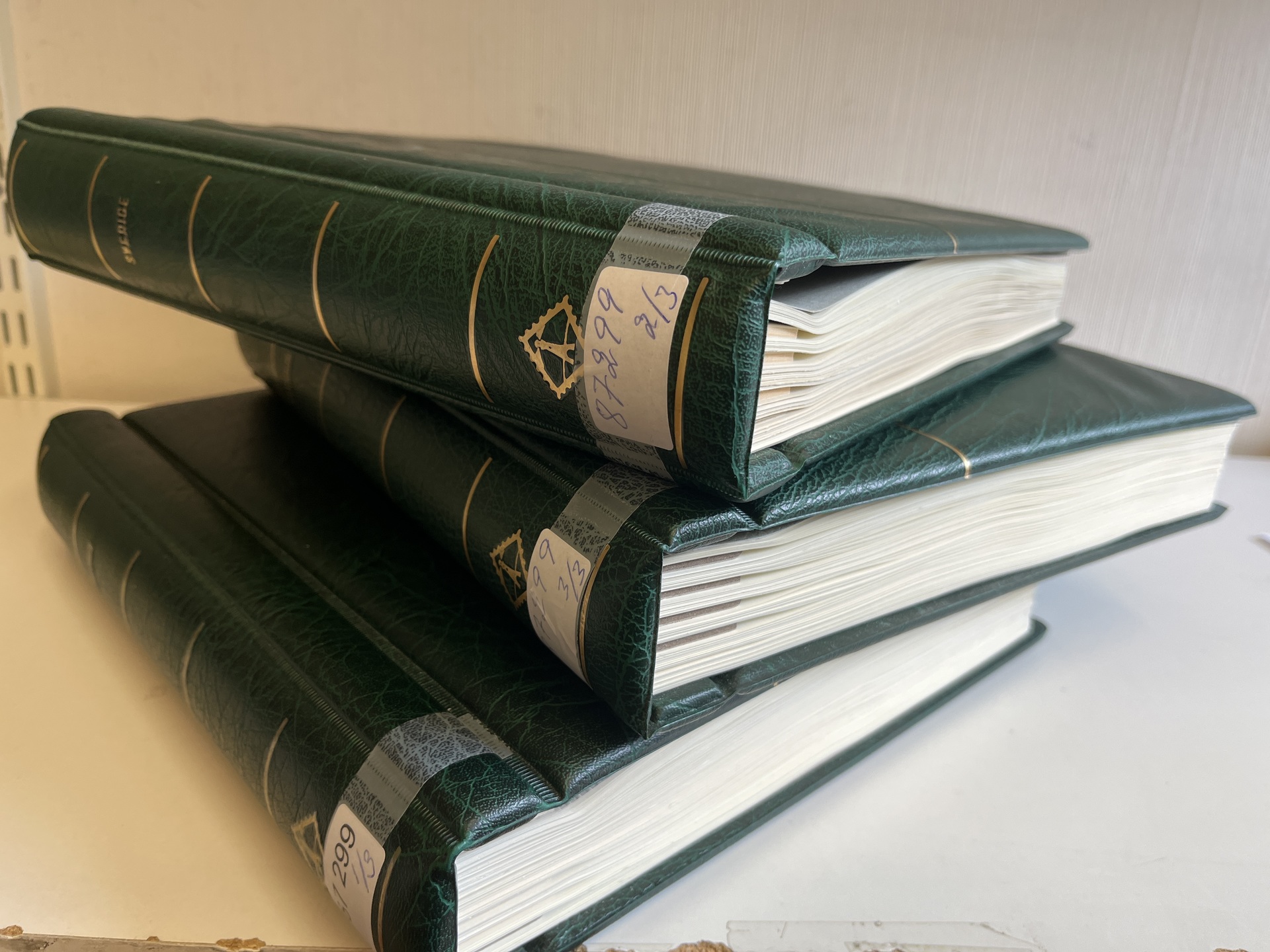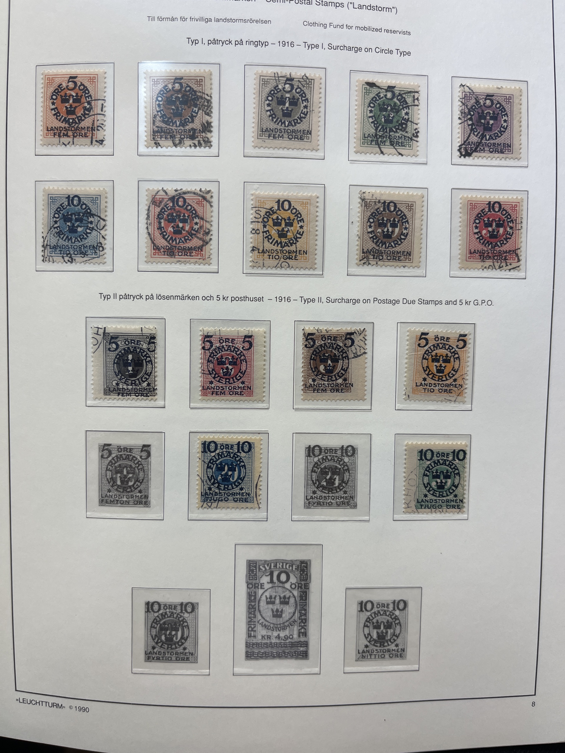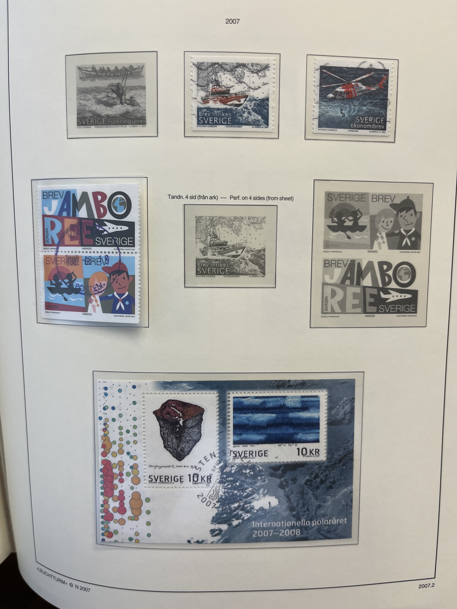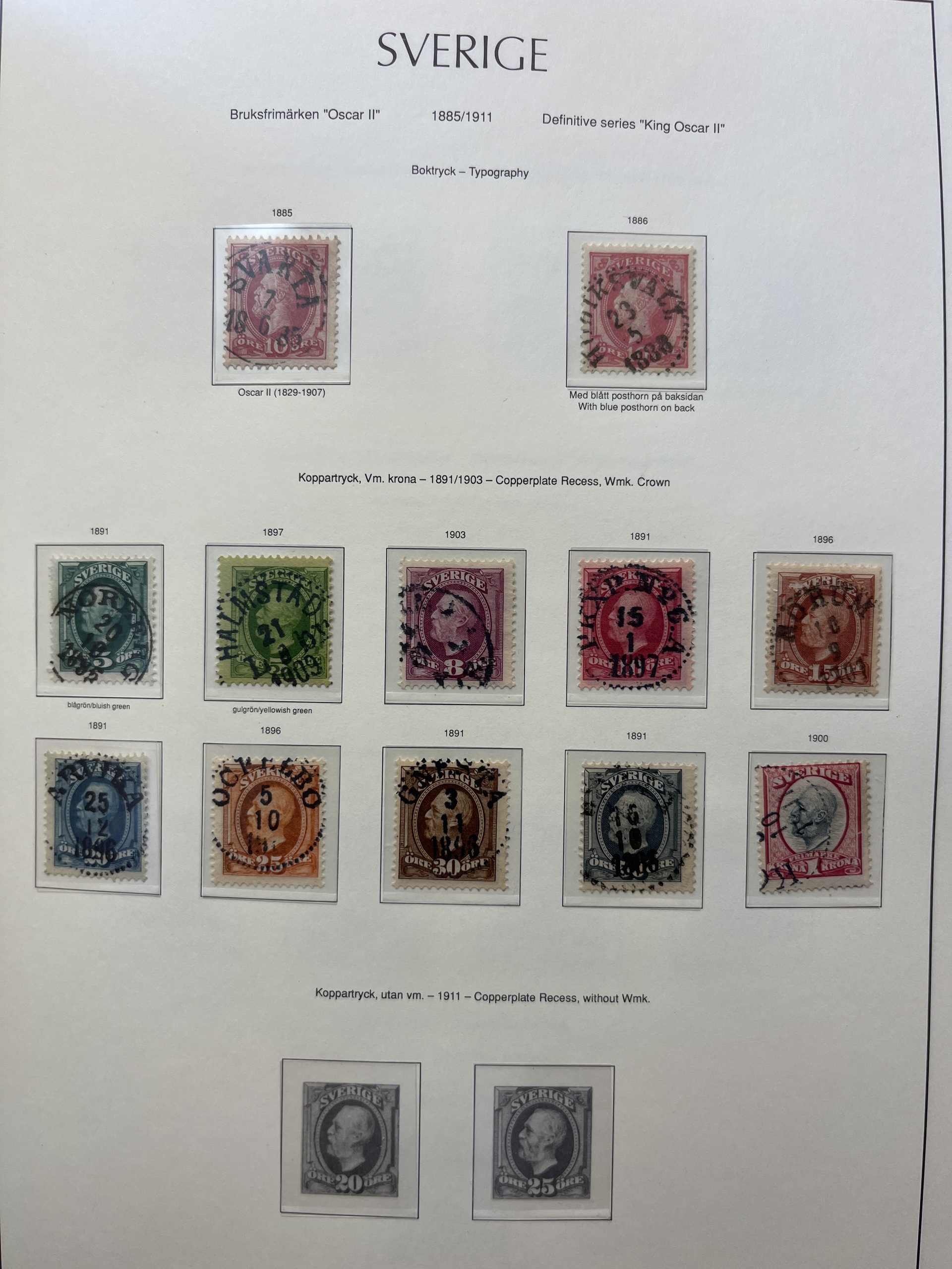 Sweden. Collection used 1855–2013 in three fine Leuchtturm albums with stamp mounts. Few stamps after 2005. Fine quality. Approx. 7 kg.