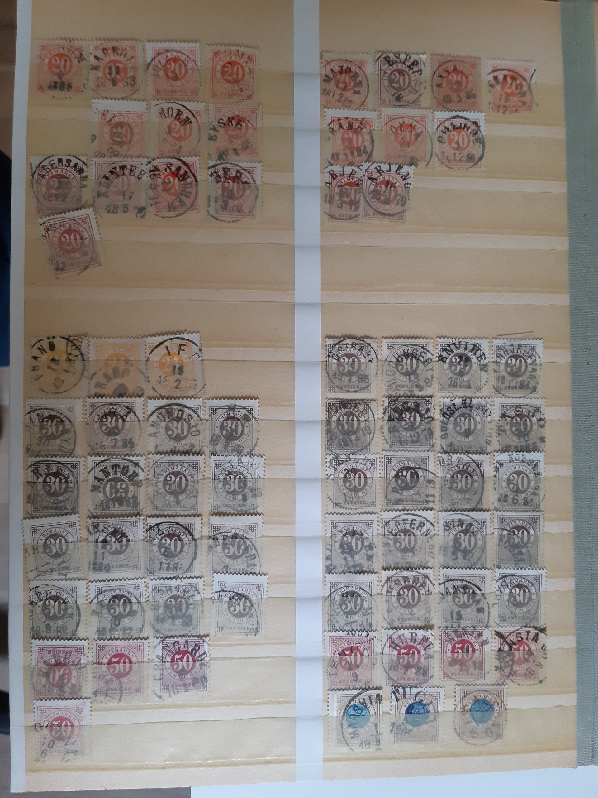 Sweden. Collection used 1858–1930 in stockbook. Sorted duplicates incl. many beautiful–superb cancellations. The entire lot is presented at www.philea.se. (375)