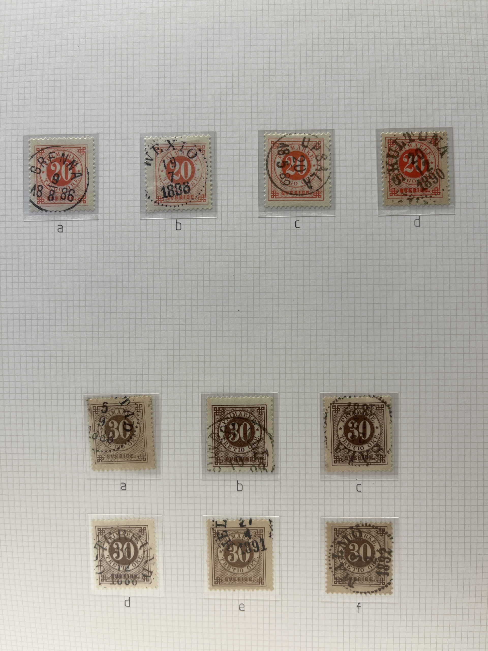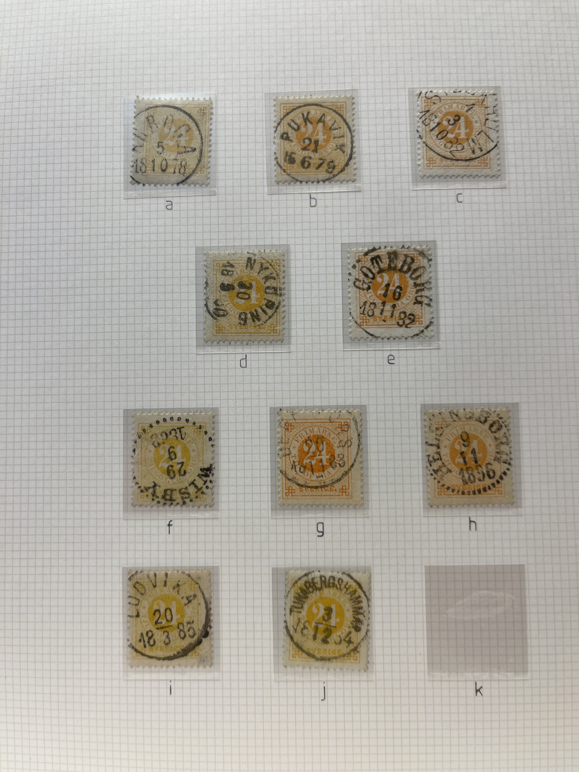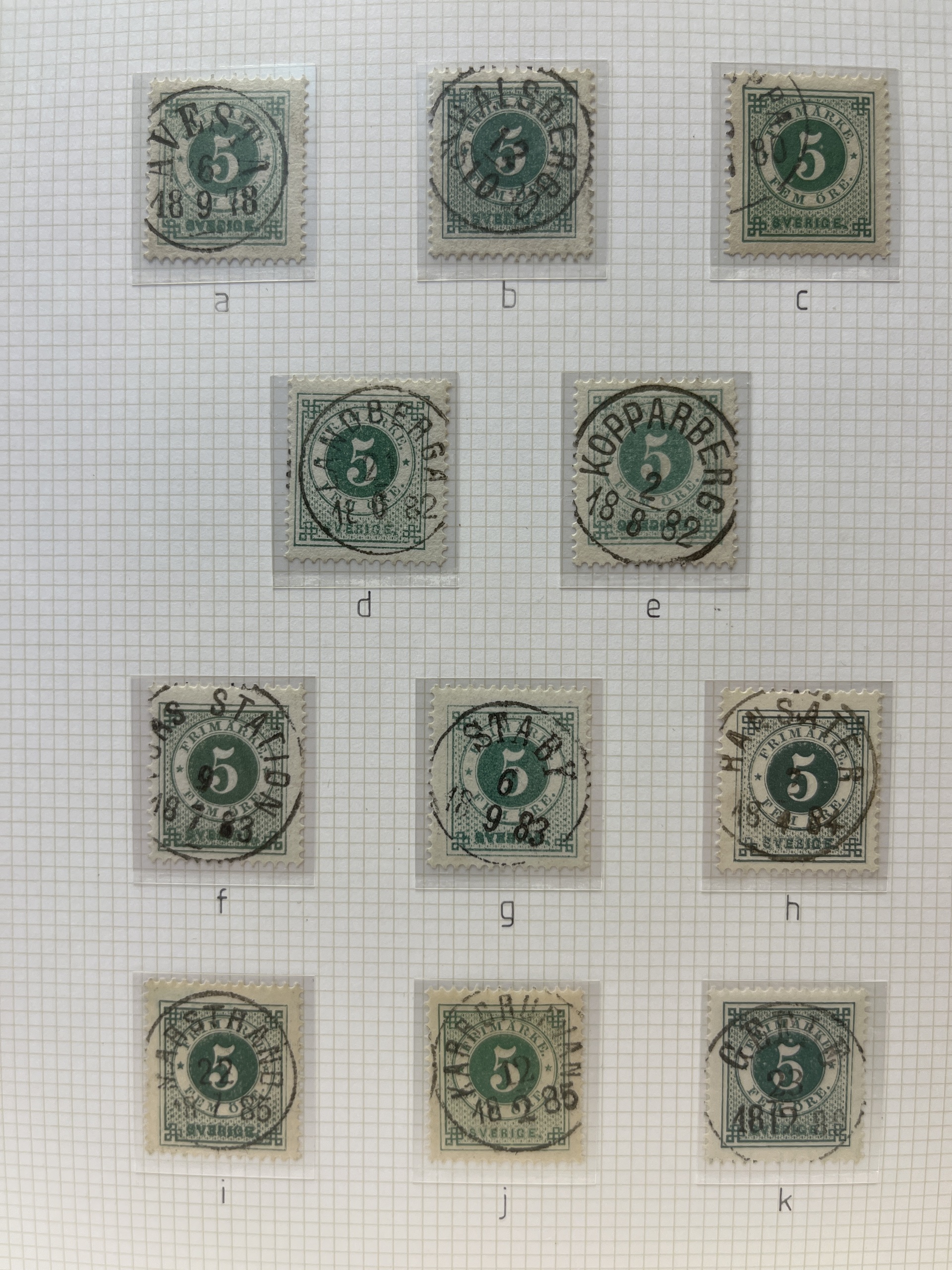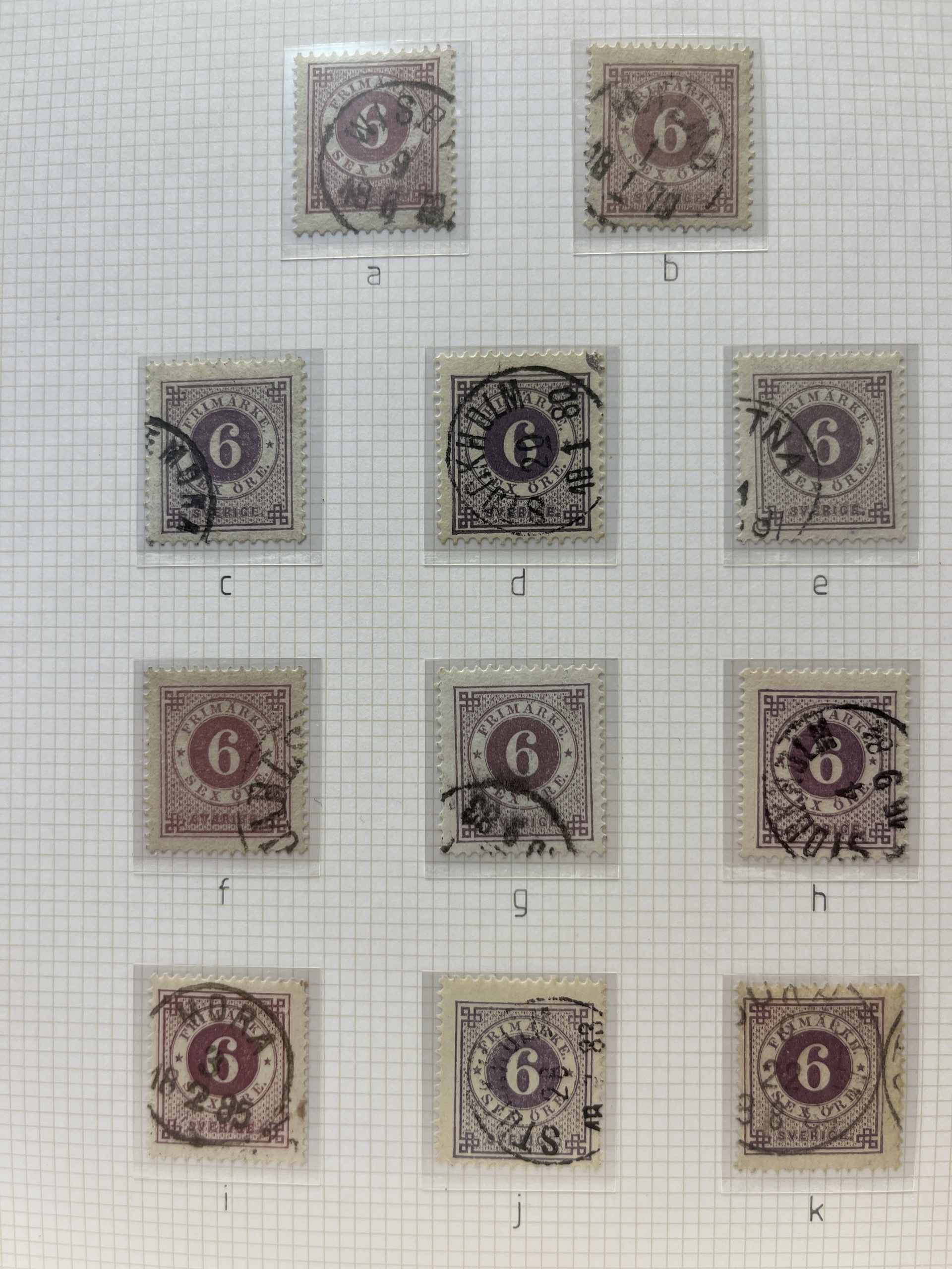 Sweden. Collection used Circle typ perf 13 - 1889 on leaves. Nice canc. and many shades. The entire lot is presented at www.philea.se. Fine quality.