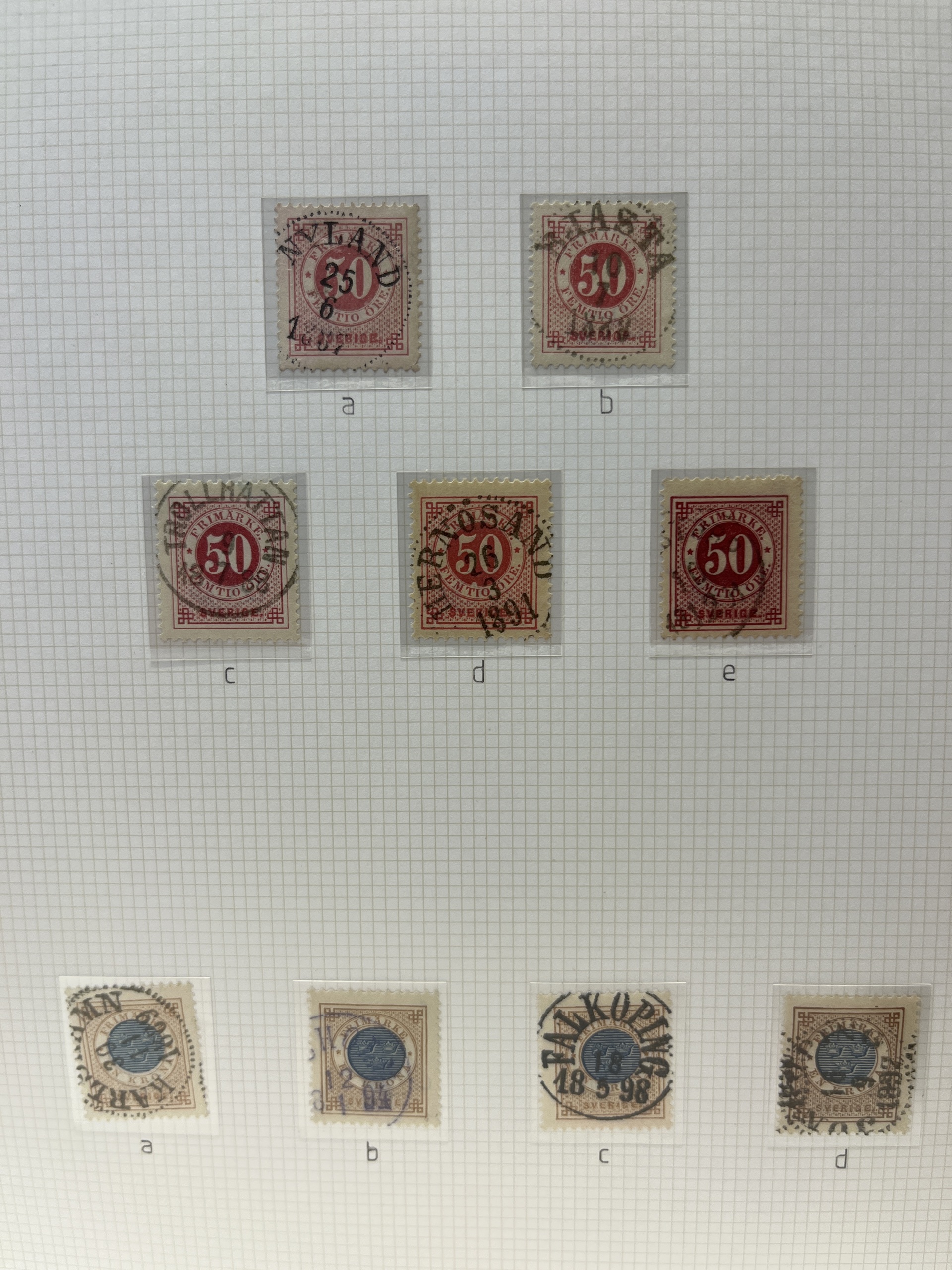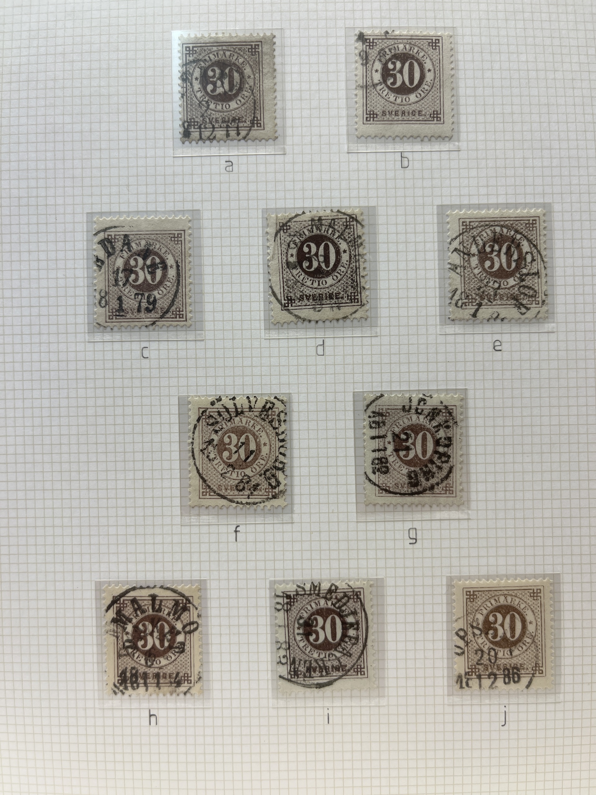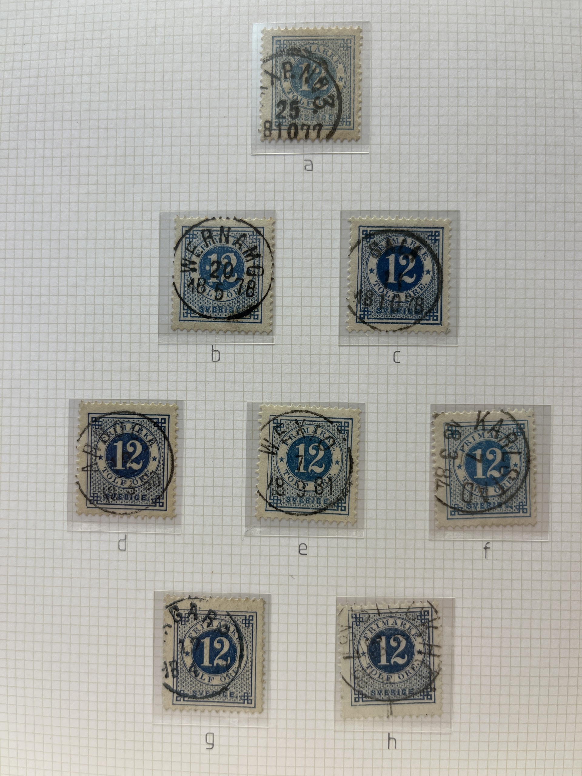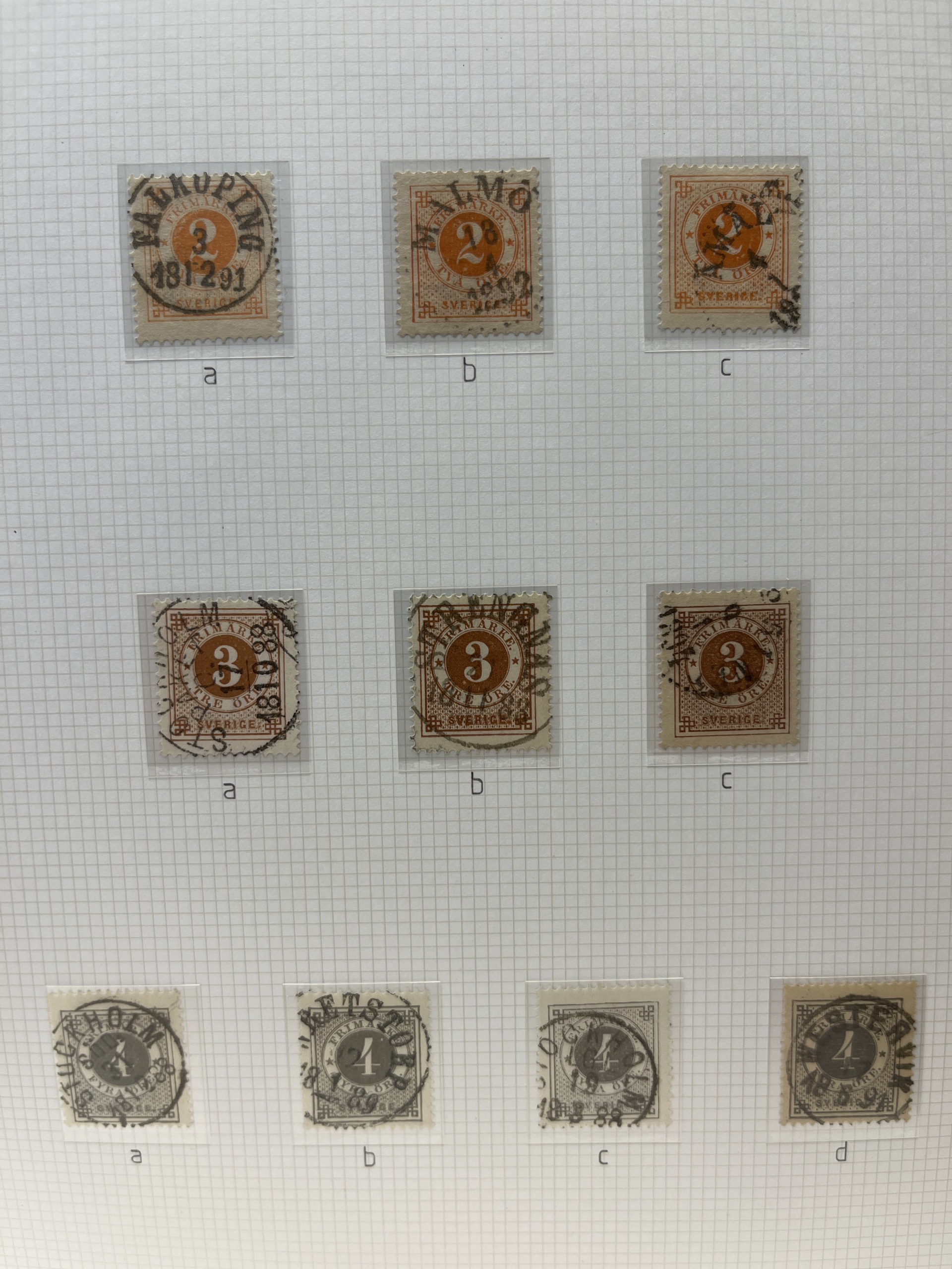 Sweden. Collection used Circle typ perf 13 - 1889 on leaves. Nice canc. and many shades. The entire lot is presented at www.philea.se. Fine quality.